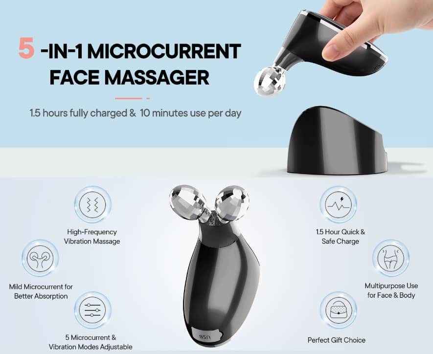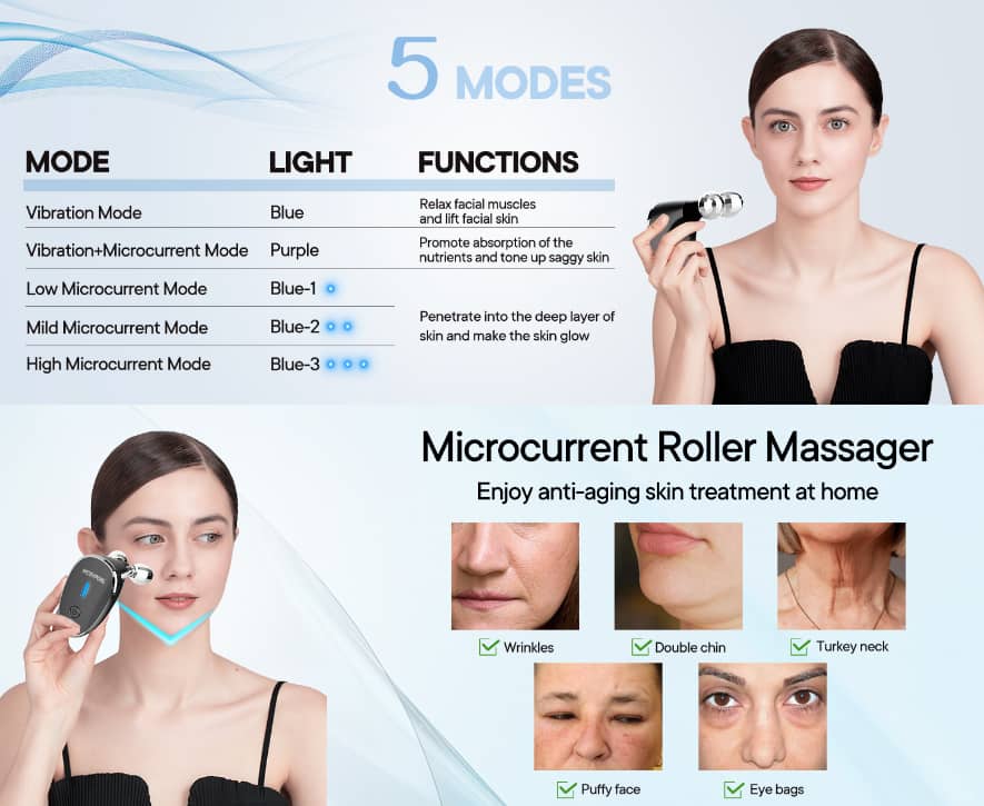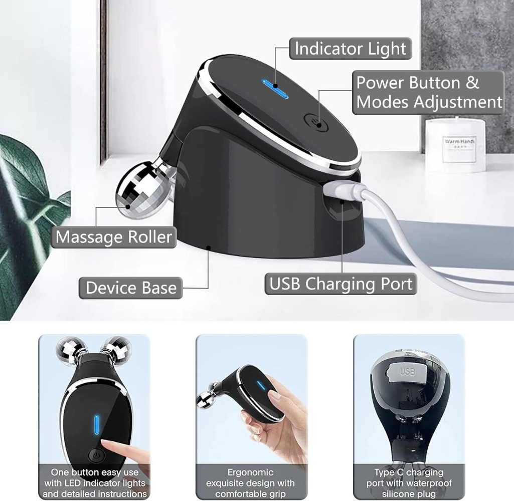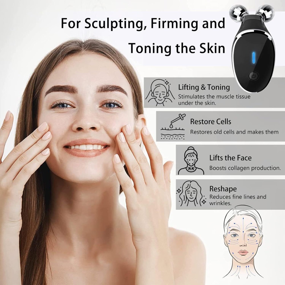Microcurrent-Facial-Device 3 in 1 Neck Face Beauty, 3D Roller Skin Tightening