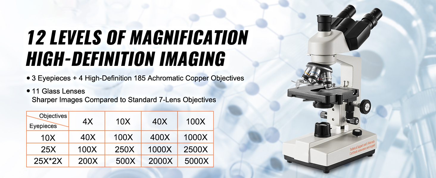 Immagini ad Alta Definizione: grazie alle 12 opzioni di ingrandimento e all'imaging avanzato, il microscopio trinoculare offre una nitidezza d'immagine superiore a quella dei comuni microscopi a lenti presenti sul mercato. Esplorate le strutture cellulari delle piante, osservate il mondo microscopico e svelate i misteri del micro.