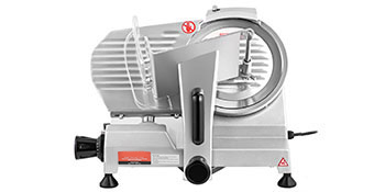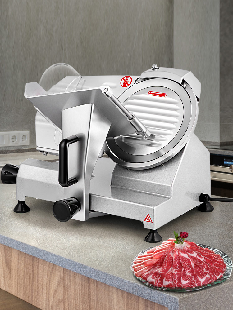 Il corpo è realizzato in fusione di alluminio e la lama da 8 pollici di diametro è costruita in acciaio al carbonio 45 # per resistere alla corrosione e alla ruggine. Il bordo affilato della lama consente di affettare rapidamente la carne. La superficie di taglio scanalata impedisce efficacemente alla carne di rimanere sulla lama.