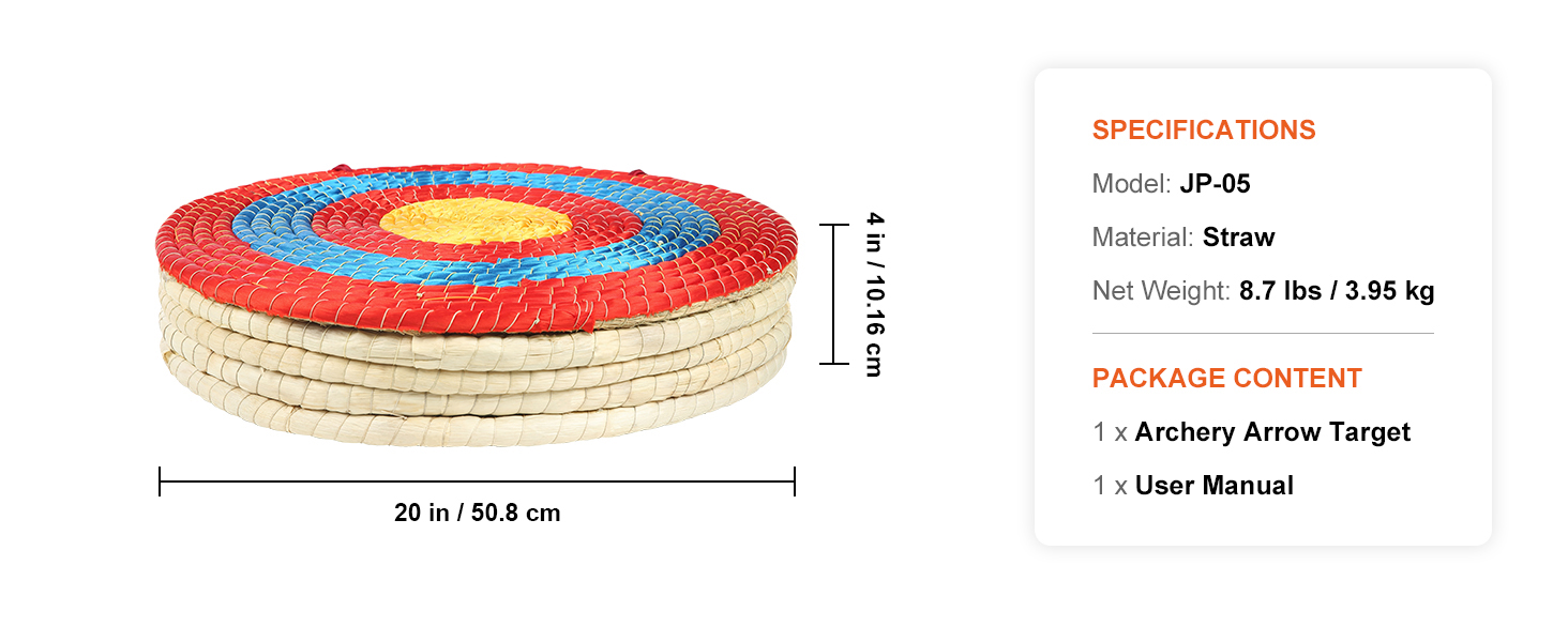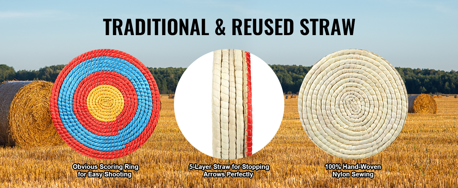 Paglia Solida Fatta a Mano: il nostro obiettivo è realizzato in paglia solida. Questo design tradizionale offre una protezione superiore per le tue frecce riducendo al minimo i danni. L'evidente anello di marcatura garantisce un tiro facile e preciso, e la cannuccia a cinque strati ferma efficacemente le frecce nelle loro tracce. Inoltre, è tessuto a mano al 100% con cuciture in nylon resistente per una lunga durata.