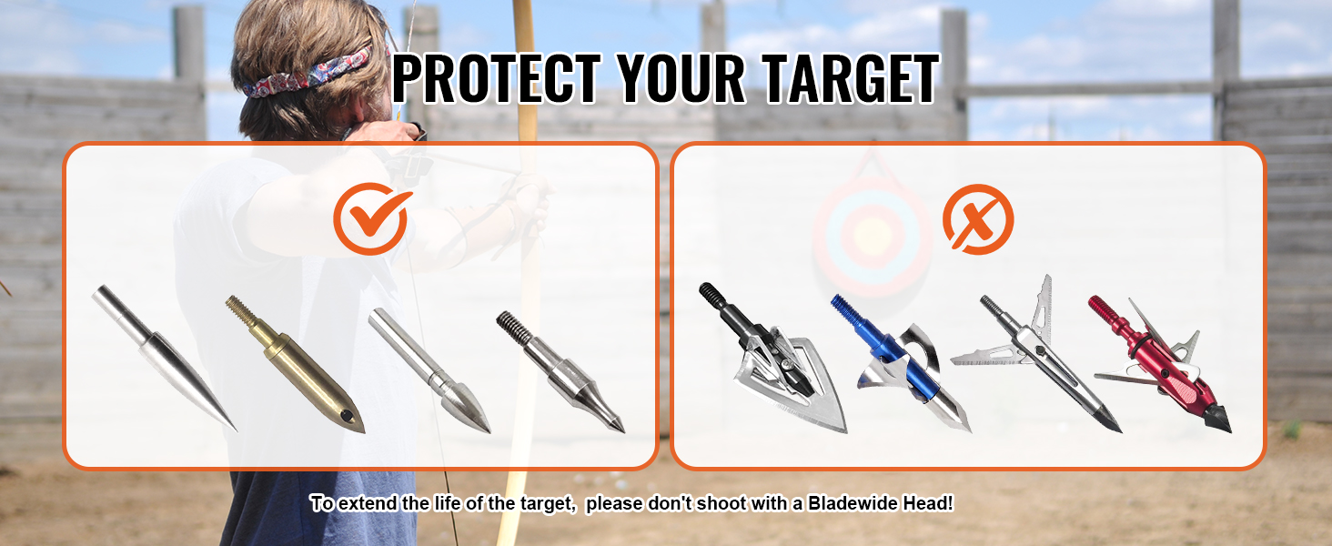Alta Compatibilità: per garantire la durata del tuo bersaglio, ti consigliamo di non utilizzare punte con teste grandi. Questa funzionalità ad alta compatibilità aiuta a prolungare la vita del tuo bersaglio di tiro con l'arco, permettendoti di goderti innumerevoli ore di pratica di tiro con l'arco.