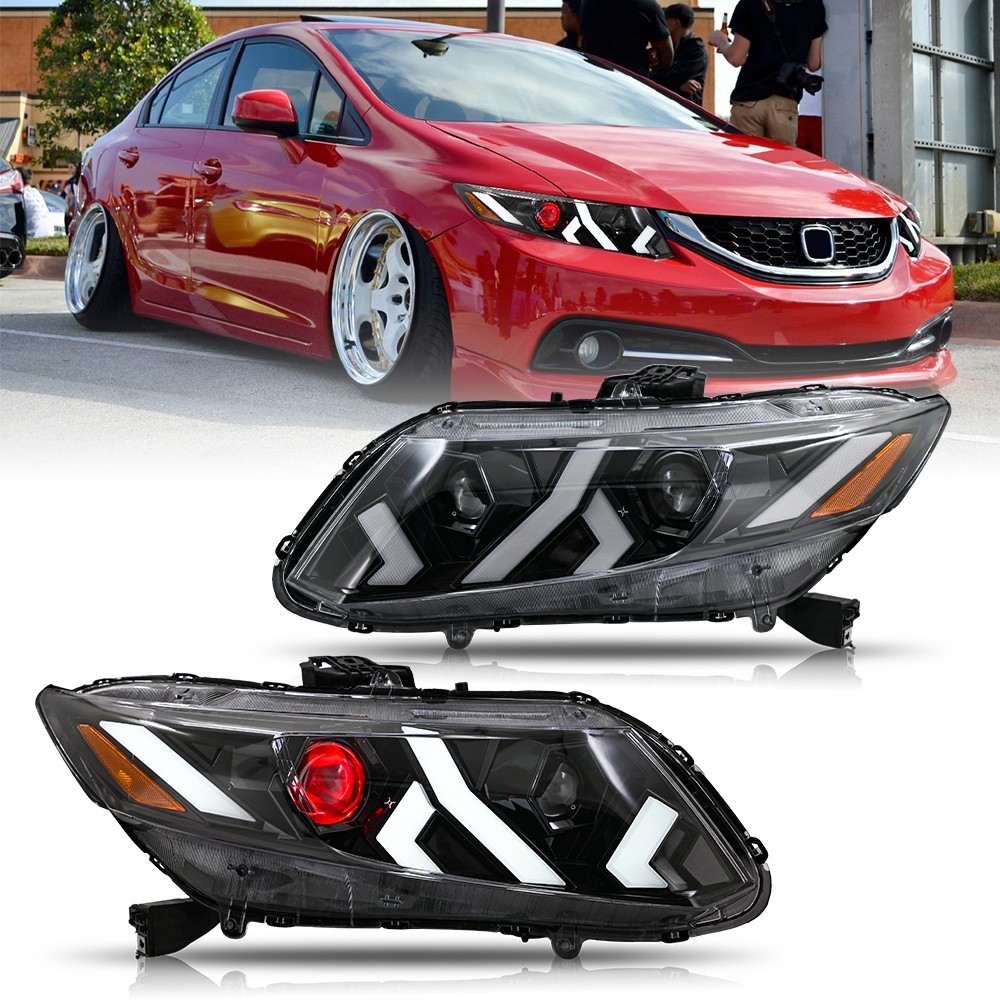 For 9th Gen 2012-2015 Honda Civic Projector Headlights Assembly w/Red eye+LED DRL