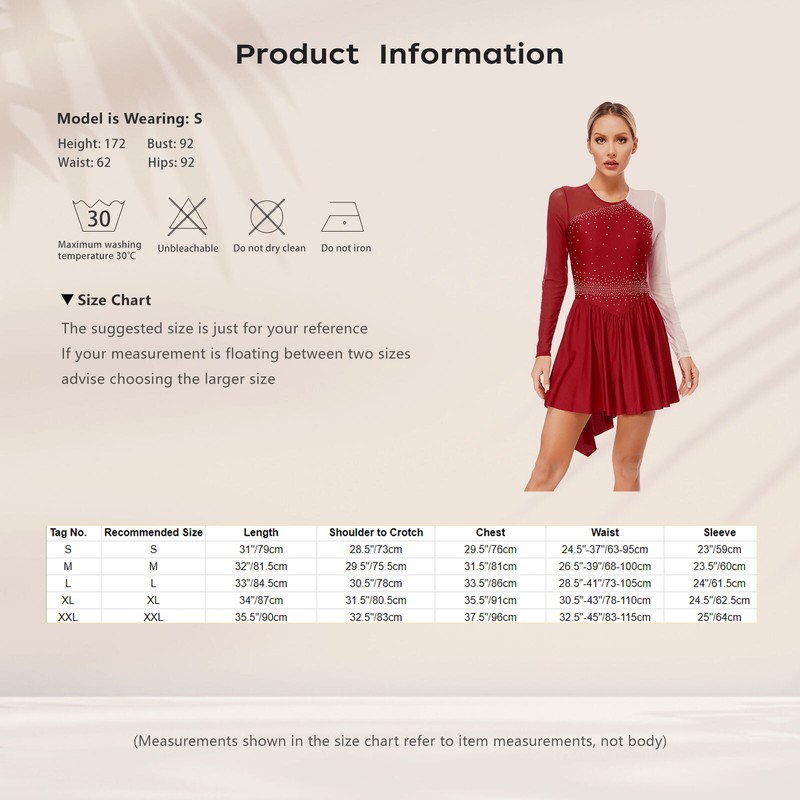 Women’s long sleeve dance dress with shiny rhinestones brightens up any performance and makes you eye-catching in the crowd.