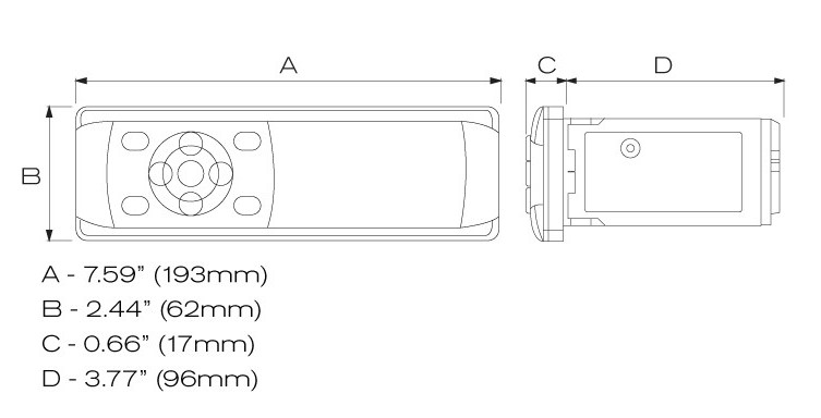 The easy-to-operate face of the unit with the high contrast display allows easy viewing and control. Regardless of full sun or shade, the display is clearly visible. Intuitive controls are straightforward. The compact single-DIN chassis offers greater installation flexibility and placement options because of its shallow depth so it fits well in nearly any dashboard, whether a car, truck, touring motorcycle, UTV or watercraft.