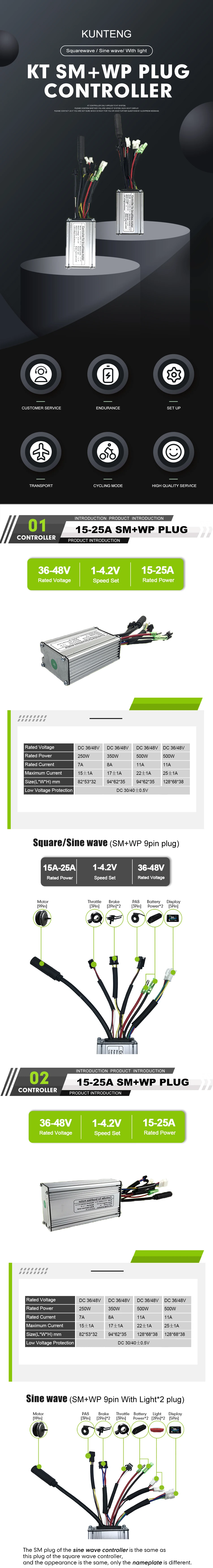 24V/36V/48V 250W-750W KT Ebike Controller with SM Connector+WP Motor Plug for Electric Bicycle 15A 17A 20A 22A Control System