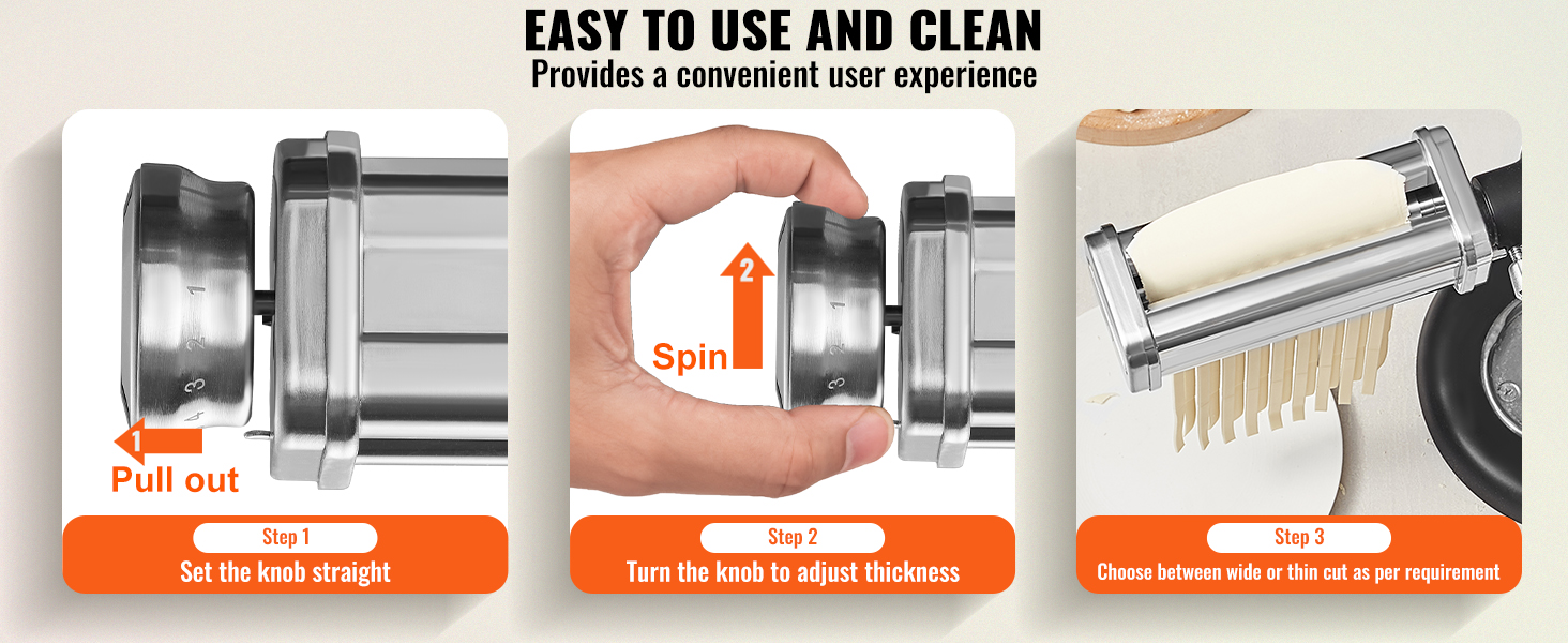 Questo rullo tagliapasta è realizzato interamente in acciaio inox di alta qualità. La struttura robusta può sopportare un uso prolungato senza deformazioni o danni. Inoltre, la superficie elegante dell'acciaio inossidabile semplifica la pulizia, resistendo allo sporco.
