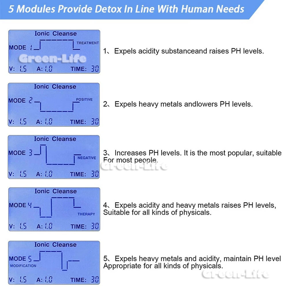 【Advanced Detoxification】Featuring 5 detox modes and 15V ion production for enhanced ion output, this machine effectively removes toxins. The adjustable heating belts (low/medium/high) cater to all users, including the elderly