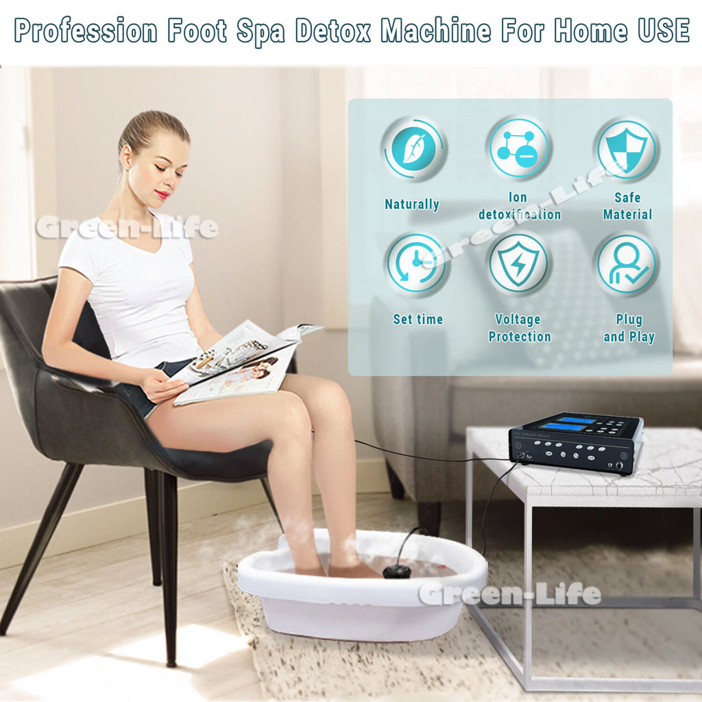 【Dual User Experience】This Ionic Foot Bath Detox Machine allows two users to enjoy a foot spa simultaneously, each with individual digital displays and controls for a personalized detox experience