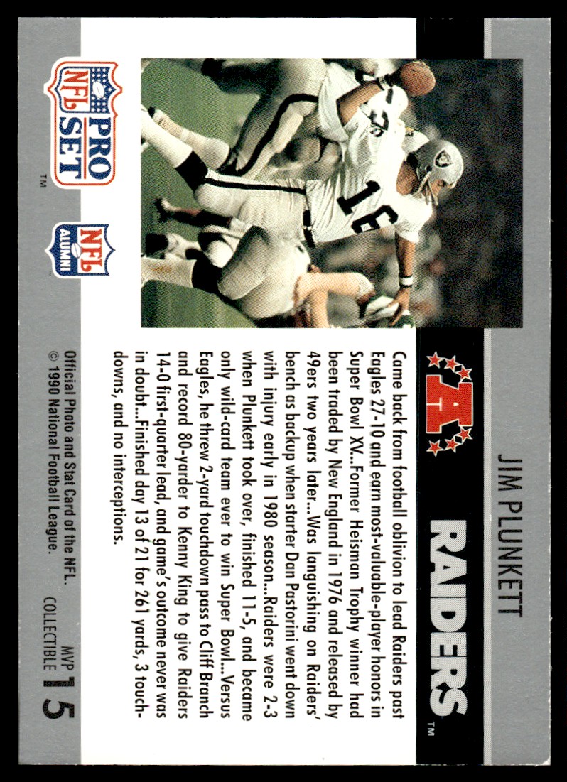 | 1990 Pro Set Super Bowl MVP Collectibles Jim Plunkett Oakland Raiders #15 |