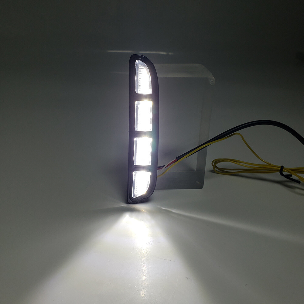 7. The White Yellow Blue light has three functions, DRL and the turn signals and night blue. When you are driving straight, it lights up white. When you turn left or right, it flashing yellow light. When you turn on headlight, it lights up blue.