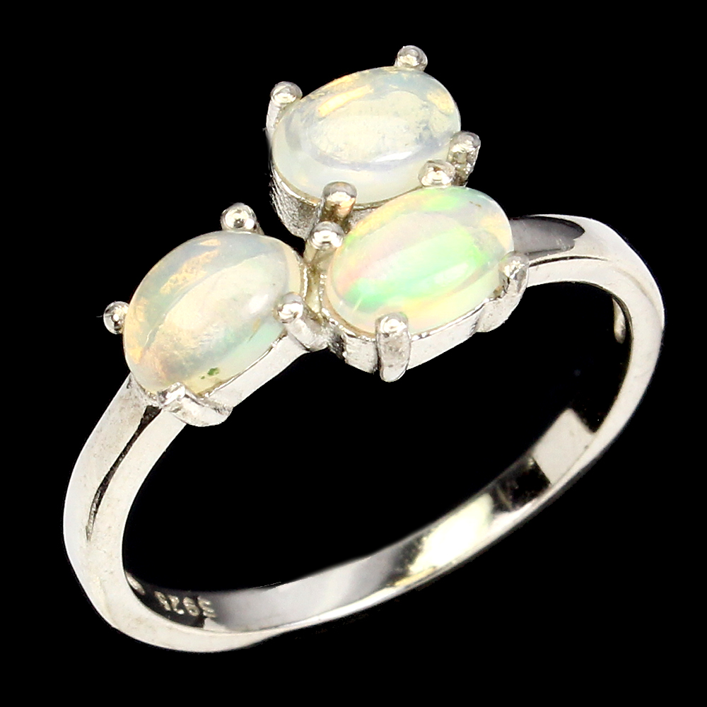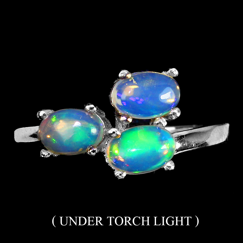 Unheated Oval Fire Opal Rainbow Full Flash 6x4mm 925 Sterling Silver Ring