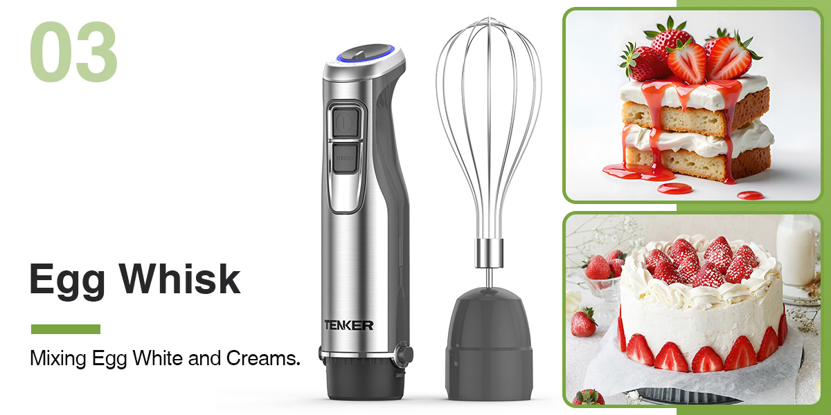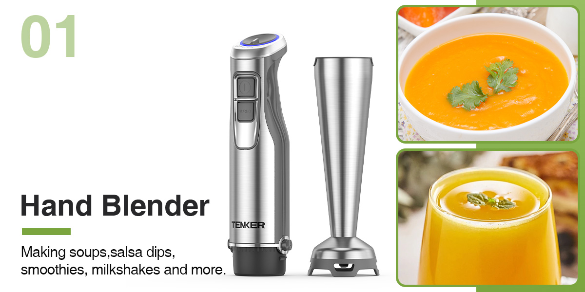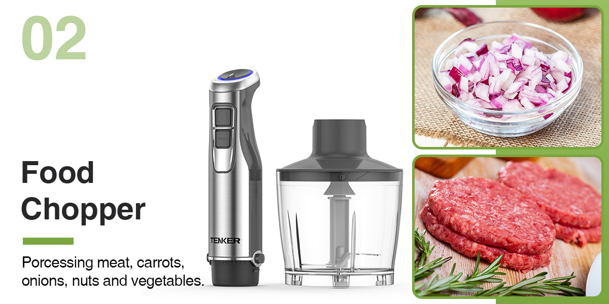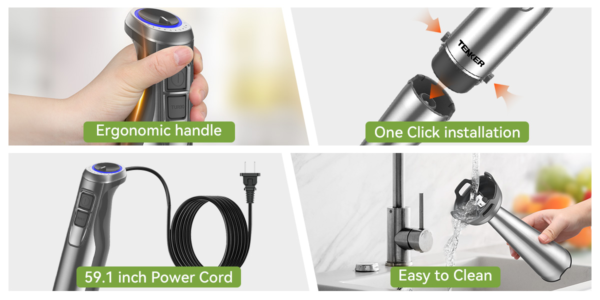 1000W FULL COPPER MOTOR: This handheld immersion blender is equipped with a powerful 1000-watt full copper motor. Unlike ordinary motors, the copper motor is guaranteed to have a 3x longer service life. With it, you can easily, quietly and quickly complete multiple stirring tasks, allowing you to enjoy your cooking time without worries.
