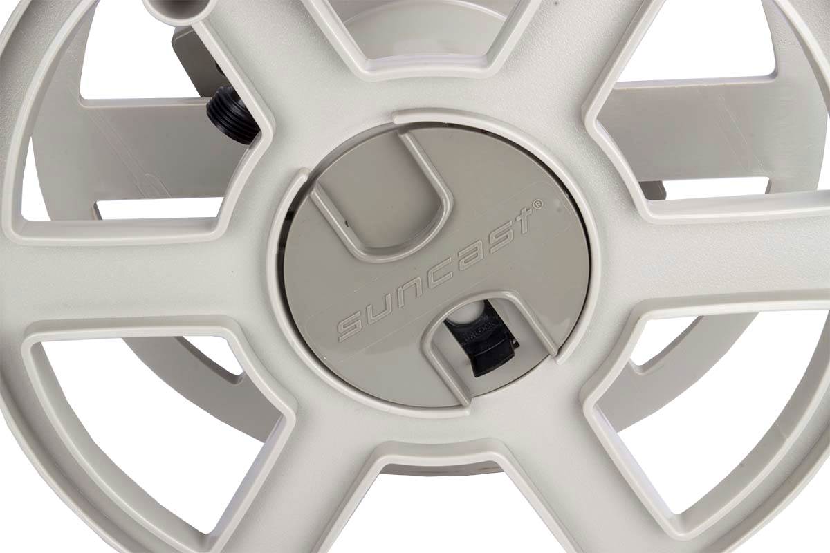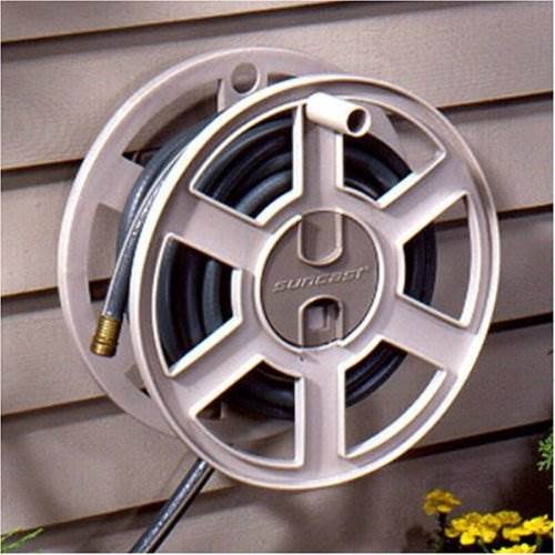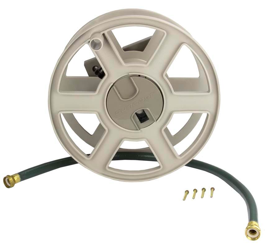 The 100' Hose Reel mounts securely to a wall and features a removable reel for winter hose storage. This water hose reel has a sturdy resin construction and is equipped with the patented EASYLINK system that ensures a watertight connection between the hose reel and the hose. The Suncast Hose Reel comes fully assembled and is a smart choice for those who want to keep up to 100' of hose neat and organized.