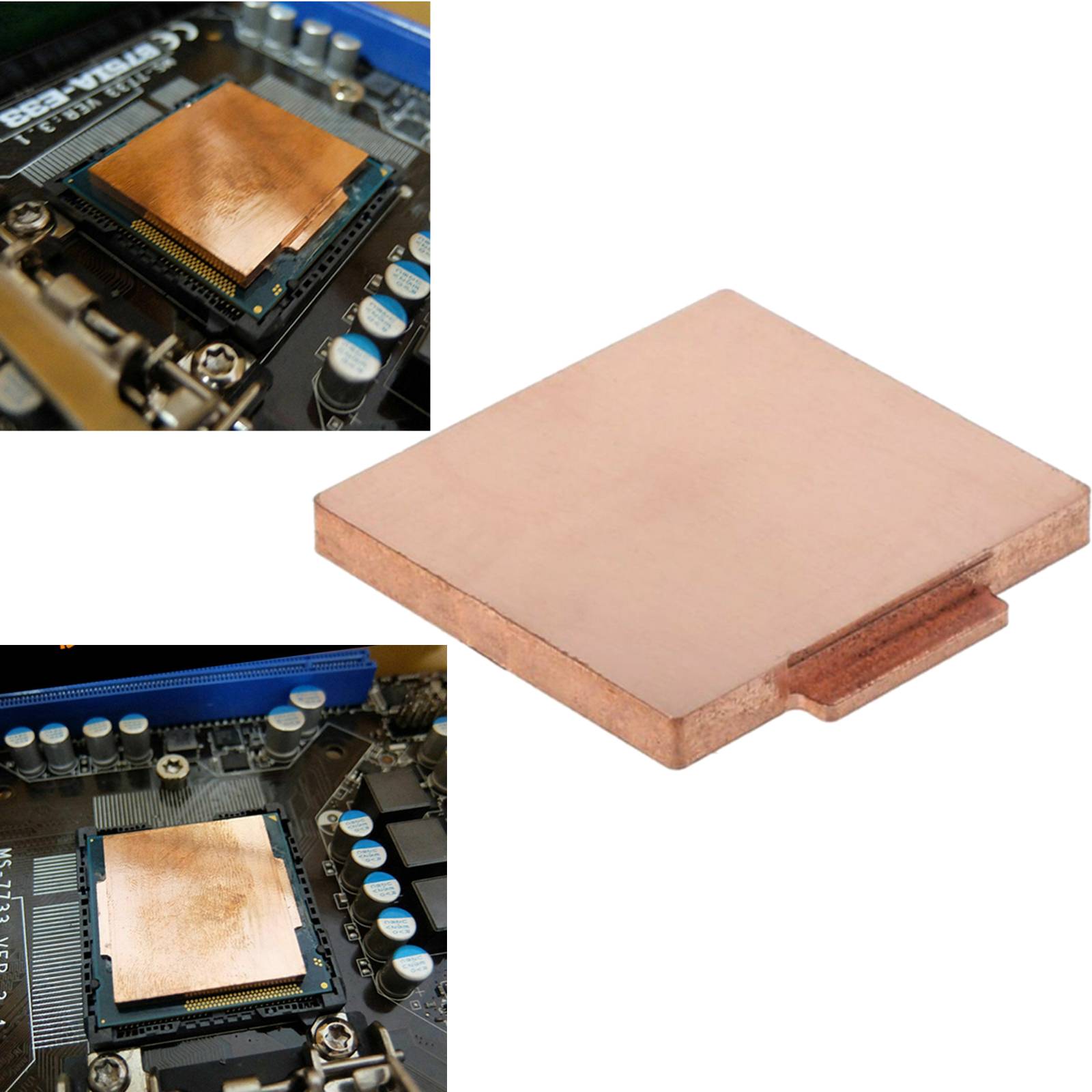 Recommended to use 704 or 922 adhesive for the cover (double-sided adhesive is not recommended), which can well bond the top cover and the substrate (prevent moving), and can also be used to fill in the small gap between the frame around the top cover and the substrate;The surface area of the top cover is slightly larger than the original one, which increases the contact area with the bottom of the radiator and increases its thermal conductivity. At the same time, the pure copper surface is also equivalent to removing the nickel plating layer on the original top cover surface (the heat conductivity of nickel is lower than that of copper), and the mirror treatment on the upper and lower surface of the top cover, which jointly increases the heat conductivity efficiency and achieves better heat conduction.