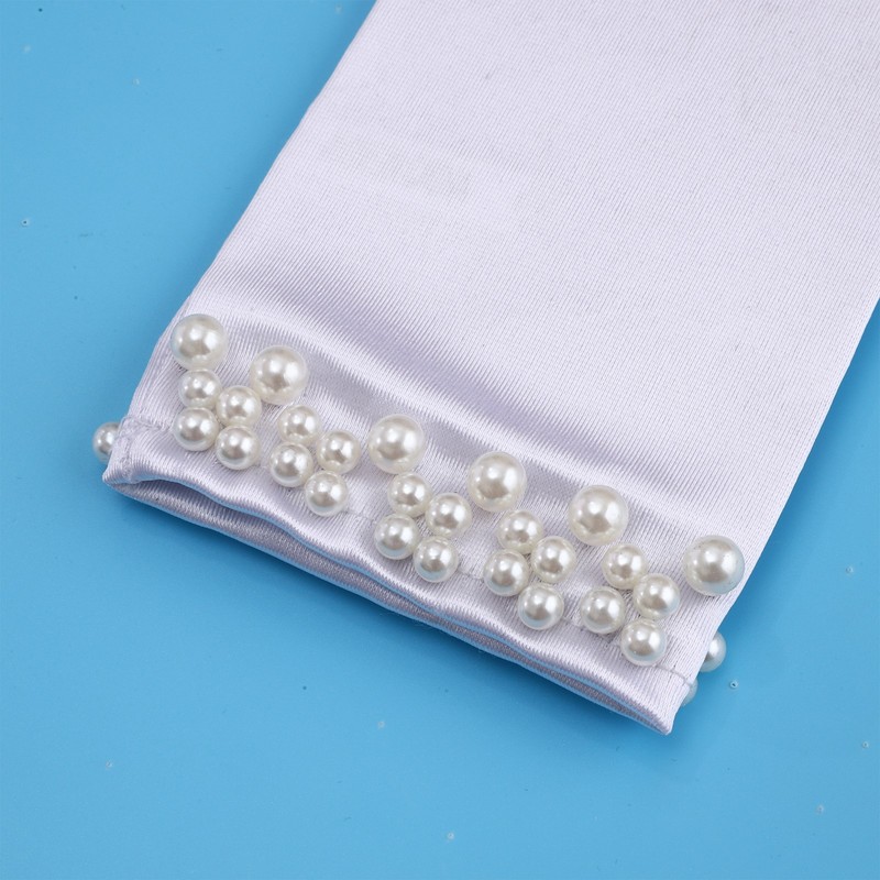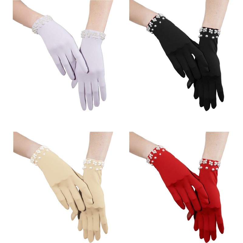 Womens Bridal Mittens Faux Pearls Festival Props Fashion Satin Gloves Opera