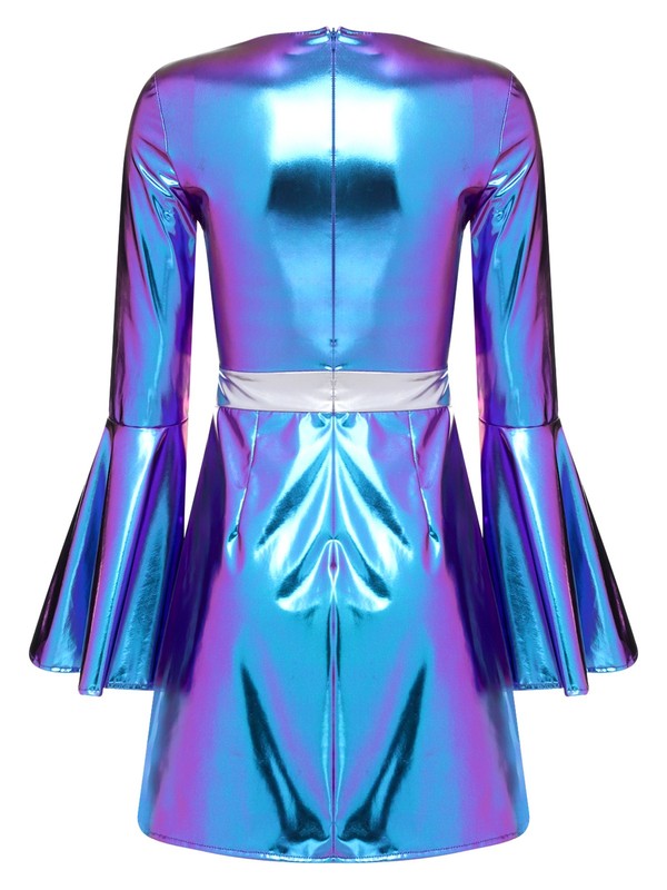 The crystal decor and metallic shiny finish give the dress a glamorous and luxurious feel, perfect for making a statement.