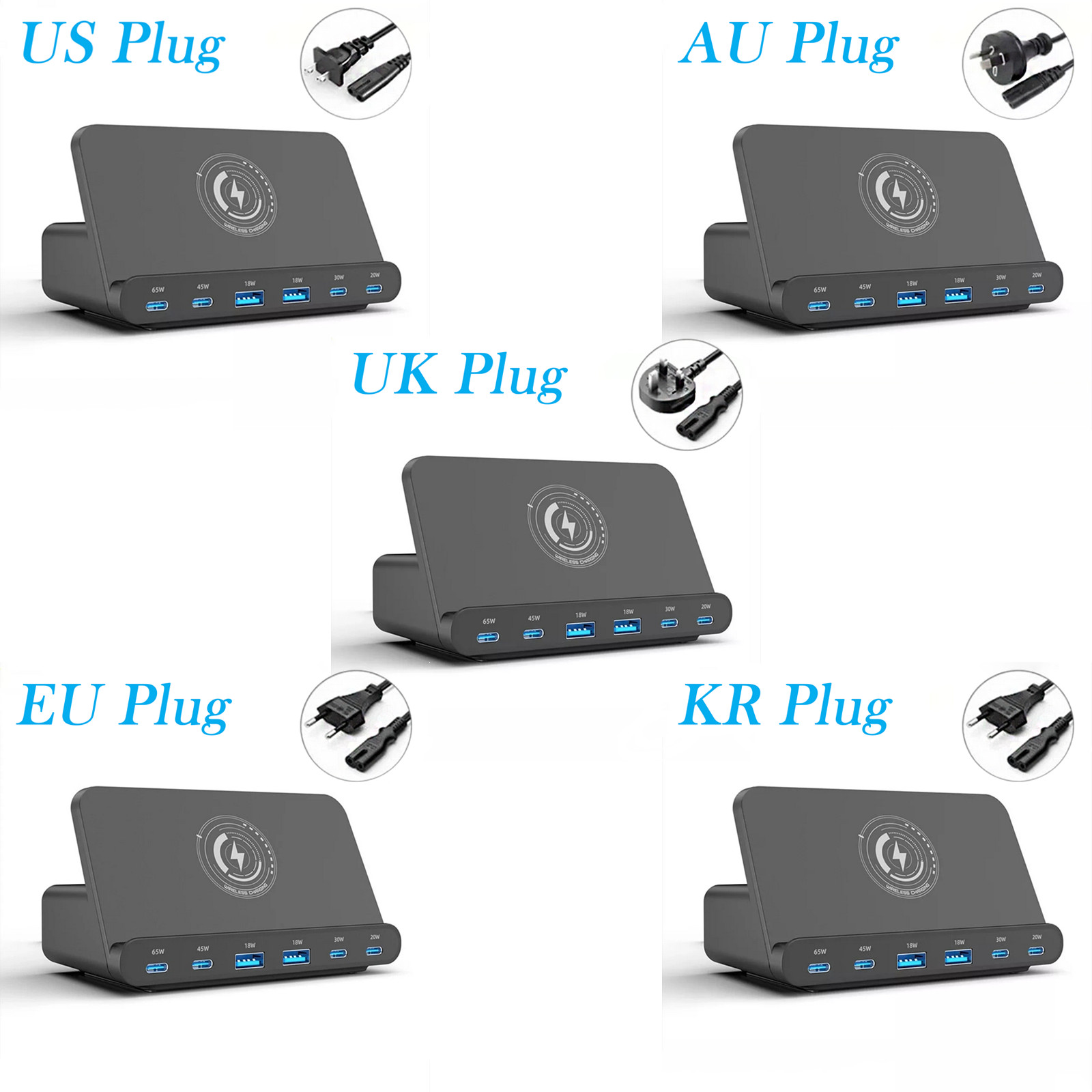 - Plug Types: US/AU/UK/EU
