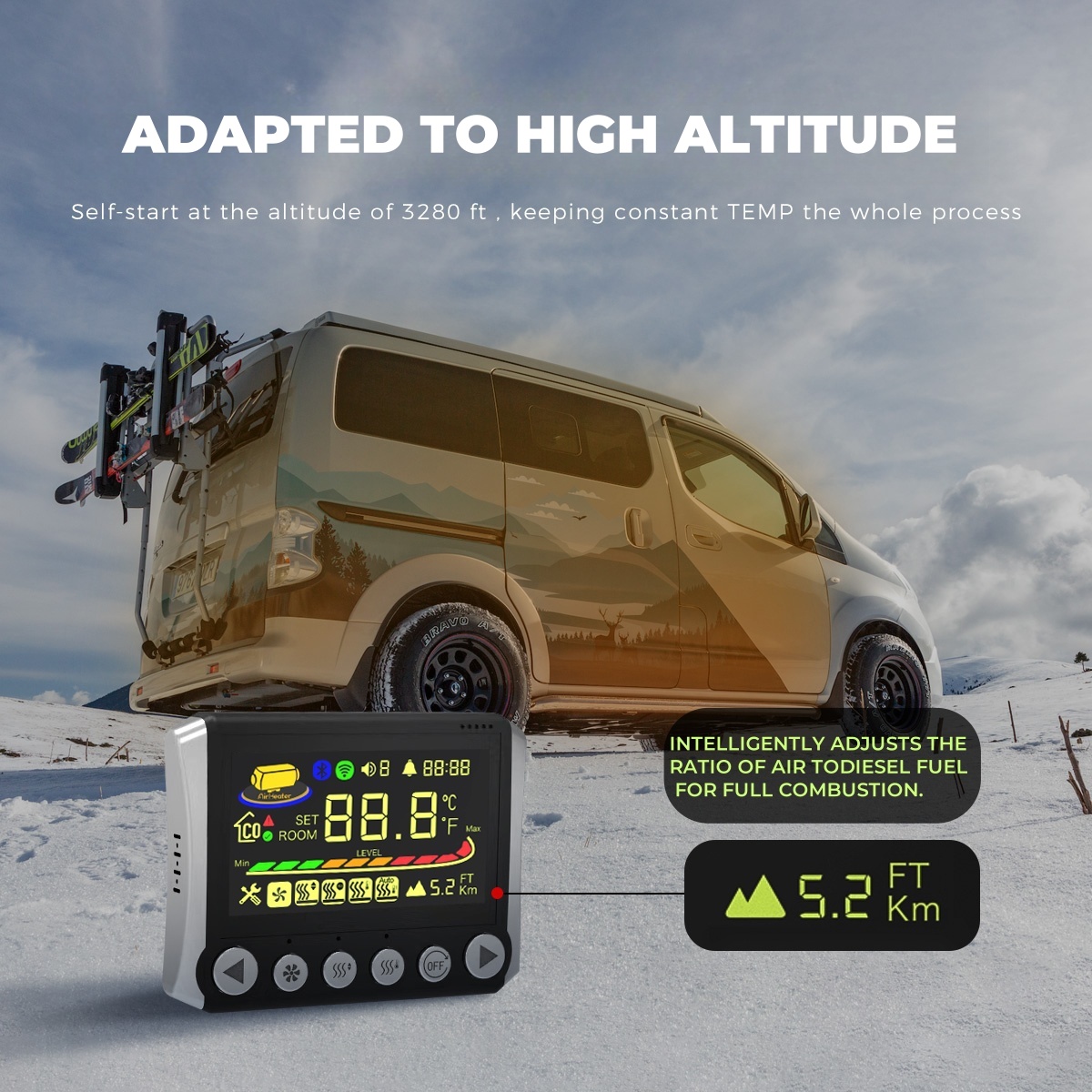 Verbessertes Plateau-Motherboard: Unser Lufterhitzer kann in Höhenlagen von bis zu 4.500 Metern über dem Meeresspiegel eingesetzt werden. Er kann die Brennstoffzufuhr automatisch an die Höhe des Plateaus anpassen und die Höhe anzeigen.