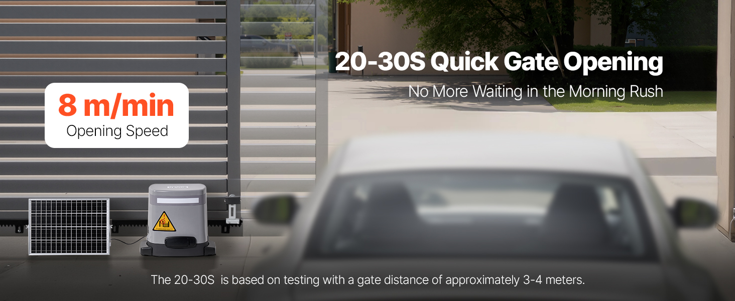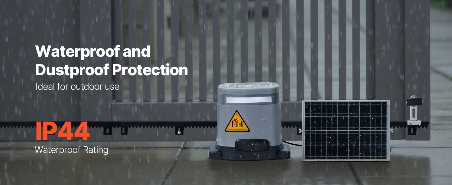 - Apertura efficiente del cancello: il nostro apricancello ad energia solare è dotato di cremagliera e motore in nylon ottimizzati che garantiscono una velocità di apertura di 20-30 secondi per cancelli di 3-4 metri