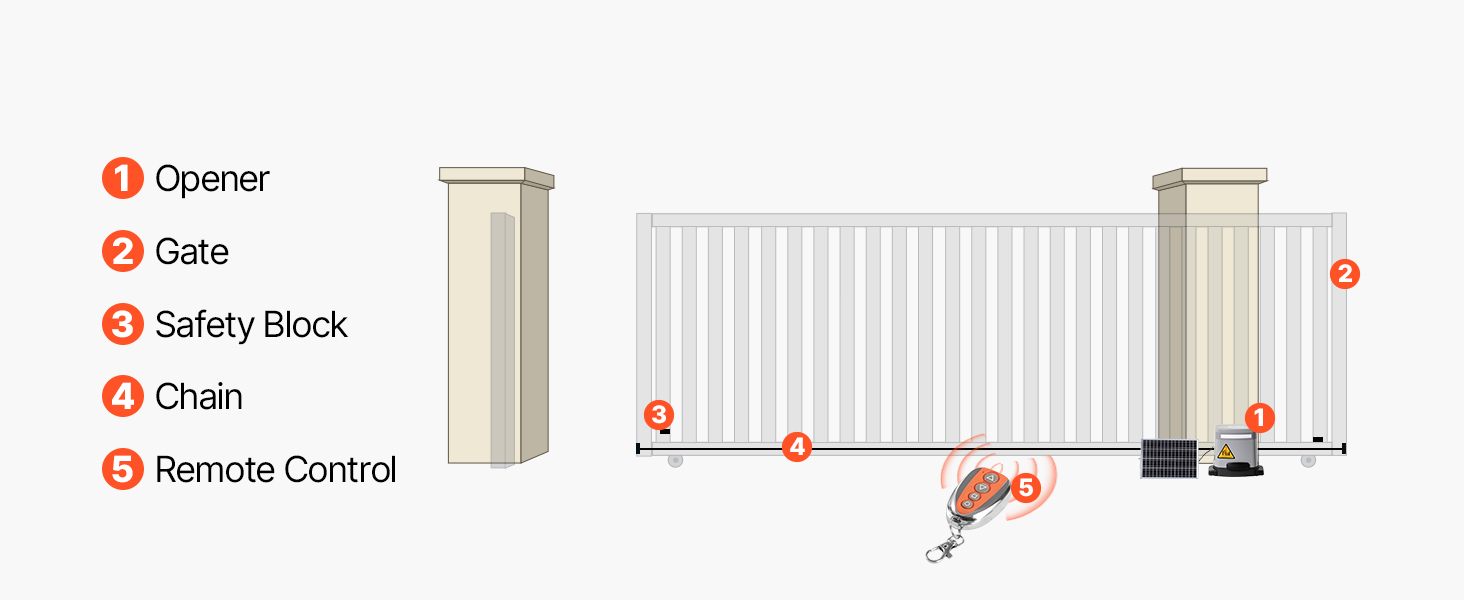 - Funzioni di sicurezza intelligenti: questo apricancello elettrico con sensori a infrarossi rileva automaticamente gli ostacoli, prevenendo le collisioni con il cancello e garantendo la sicurezza della famiglia e degli animali domestici