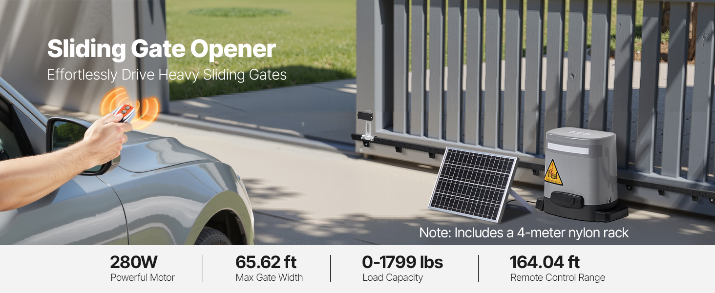 - Prestazioni potenti e elevata capacità di carico: dotato di un motore da 280 W e di una velocità di 2400 giri/min, questo apricancello solare supporta cancelli fino a 65,62 piedi / 20 metri di larghezza e 1799 libbre / 816 kg di peso
