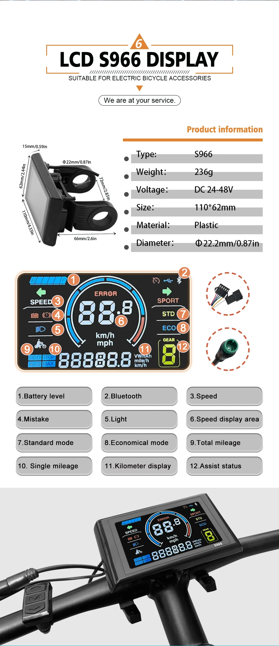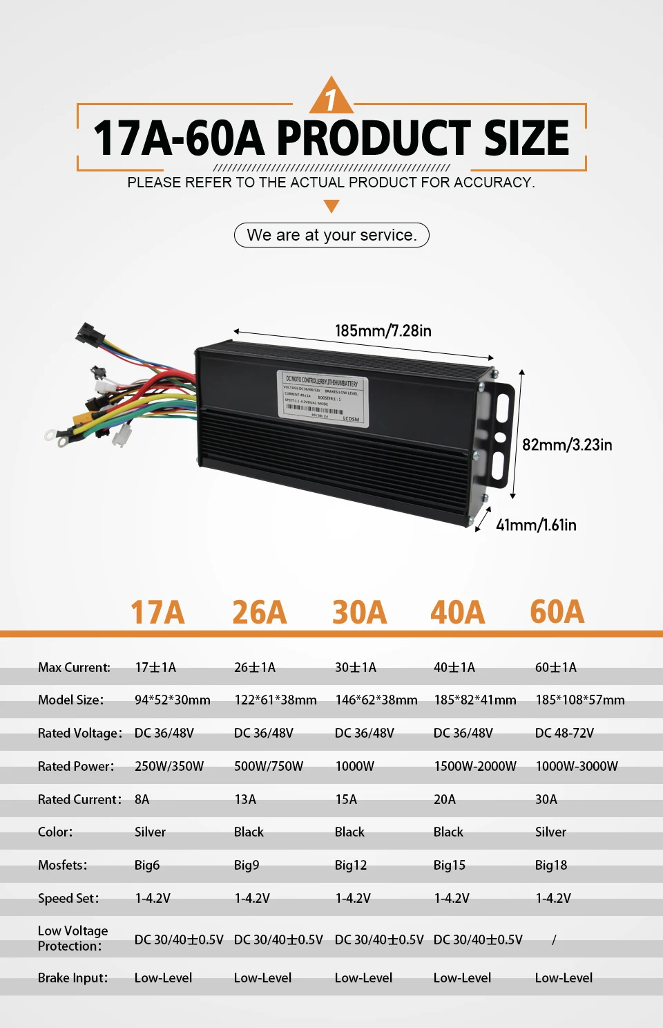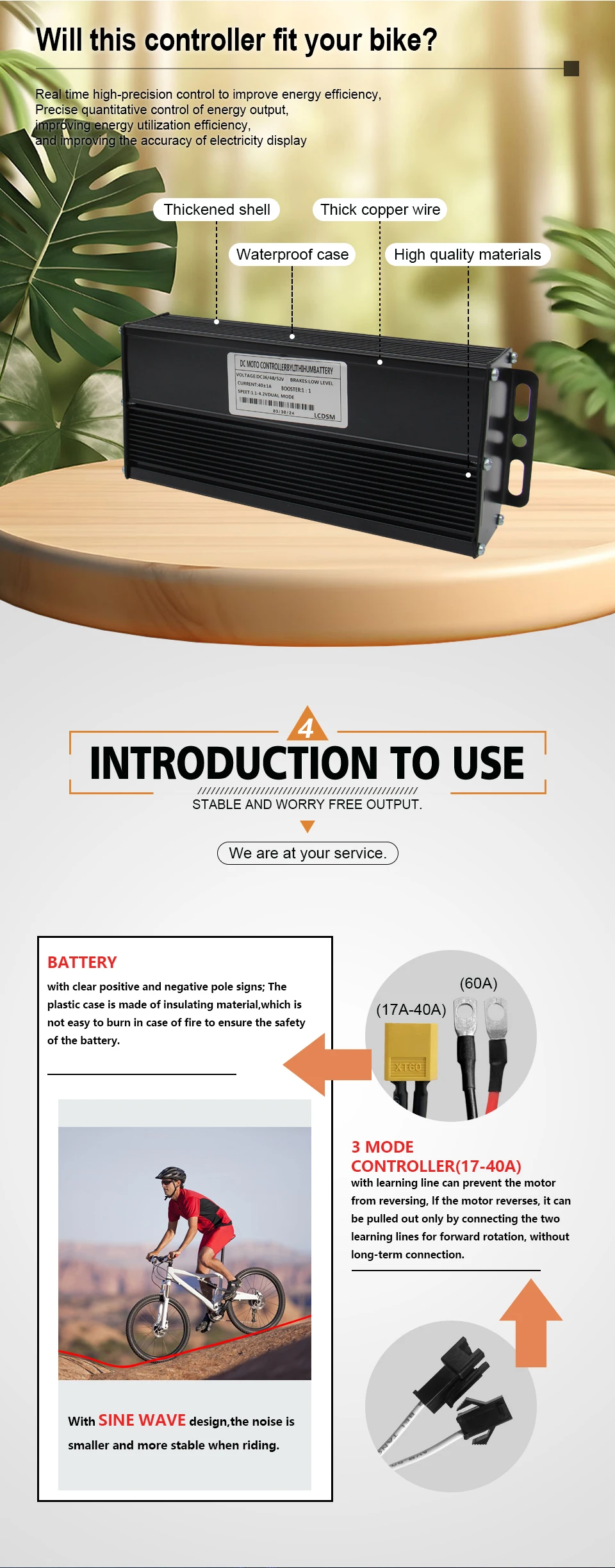 Three-Mode Sine Wave 17A-60A SM/WP Plug Controller With LCD Display Use for Electric bicycle Conversion Accessory