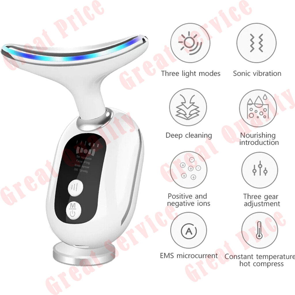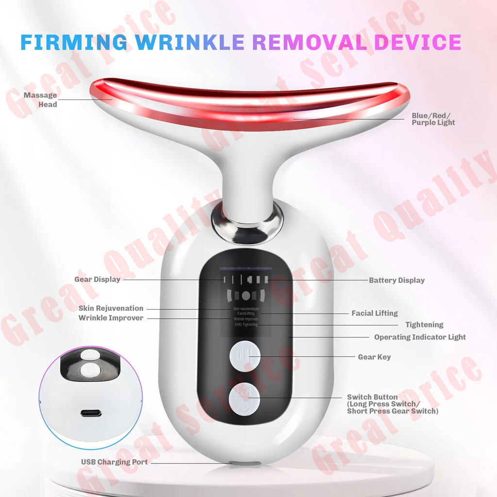 3 Color Neck Beauty Device EMS Face Lifting Massager Double Chin Remover LED Photon Anti Wrinkle Skin Tightening Facial Massager