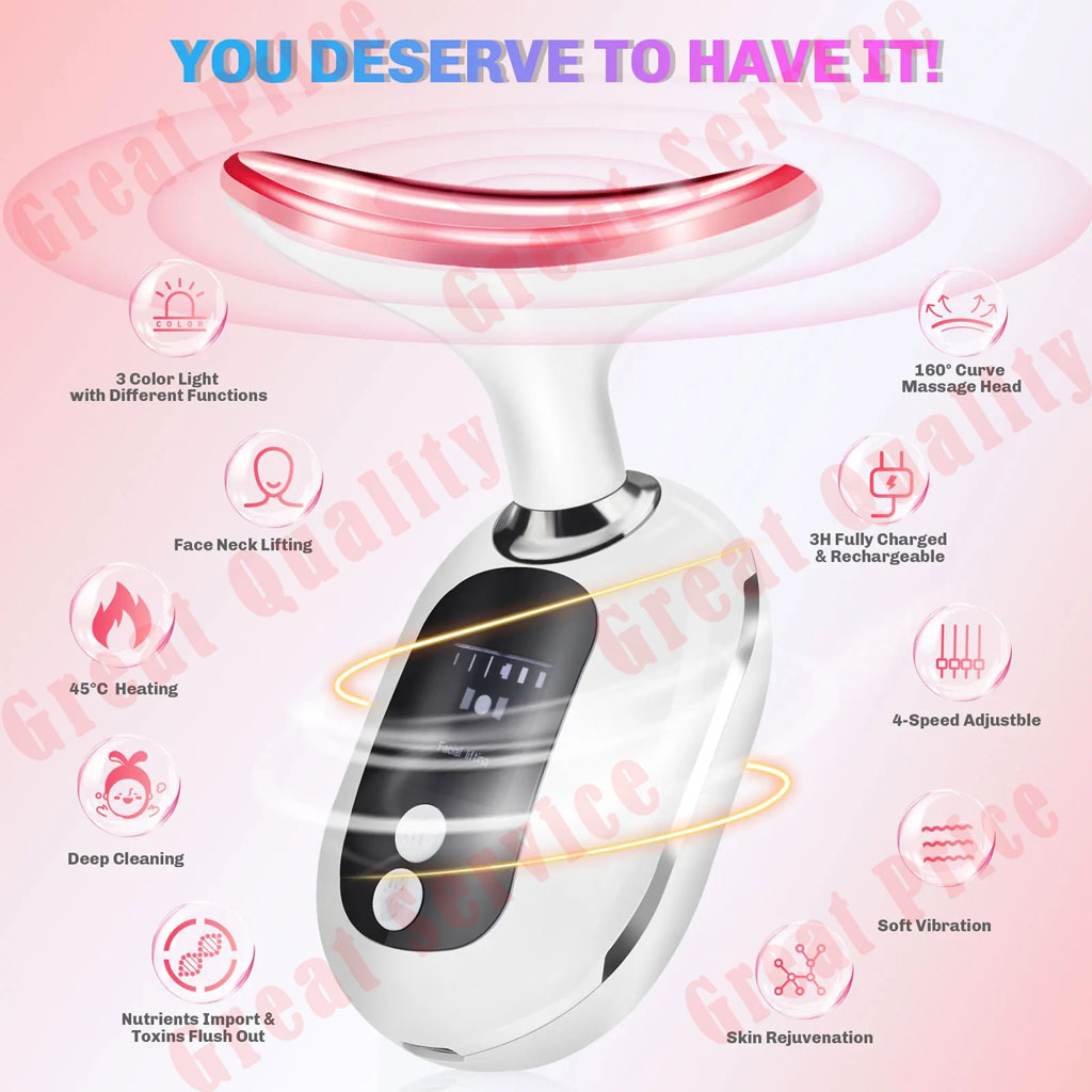 1. Neck beauty device that can be used on both the neck and face to effectively lift and firm the skin, reduce facial wrinkles, fine lines and neck lines, and is designed to give you a swan neck.