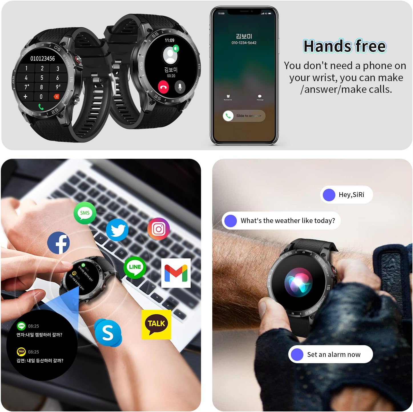 ⌚Stay Connected & Never Miss a Beat Your smartwatch keeps you effortlessly in sync with your world. Whether you're crushing it at work, sweating it out at the gym, or enjoying precious family time, every important notification - calls, texts, emails, and social media updates - glides seamlessly to your wrist. No more frantic phone digging during meetings or workouts! Take command of your music playlist with just a flick of your wrist, turning every commute into your personal concert and every workout into a power session. Stay present in life's moments while staying connected to what matters most.