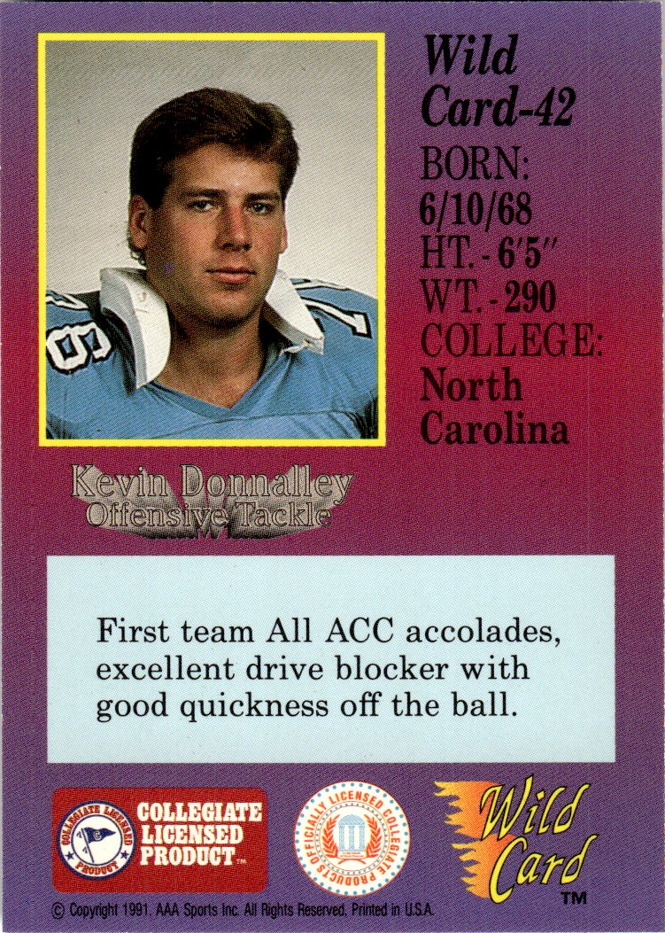 | 1991 Wild Card Draft Kevin Donnalley North Carolina Tar Heels #42 |