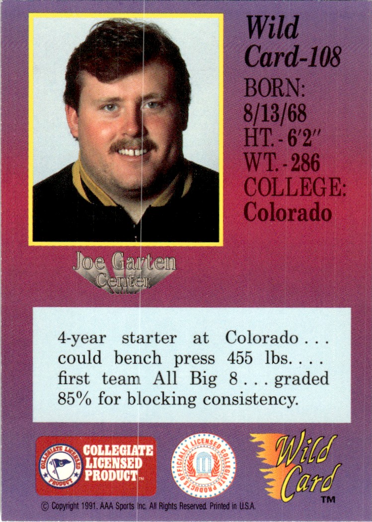 | 1991 Wild Card Draft Joe Garten Colorado Buffaloes #108 |