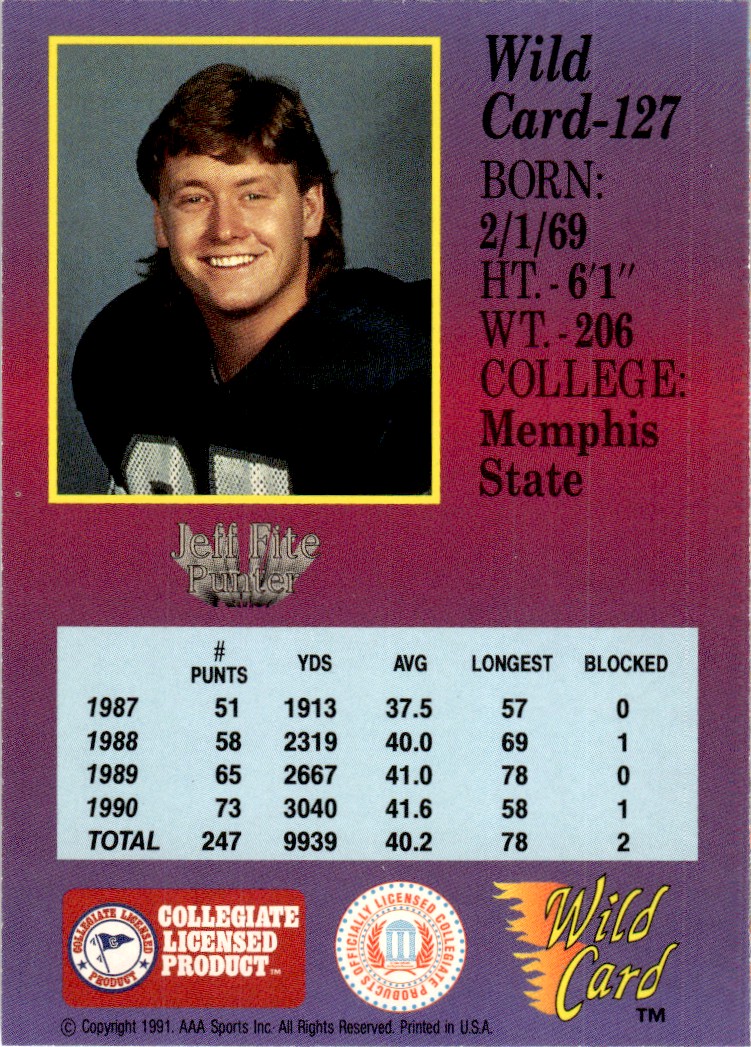 | 1991 Wild Card Draft Jeff Fite Memphis Tigers #127 |