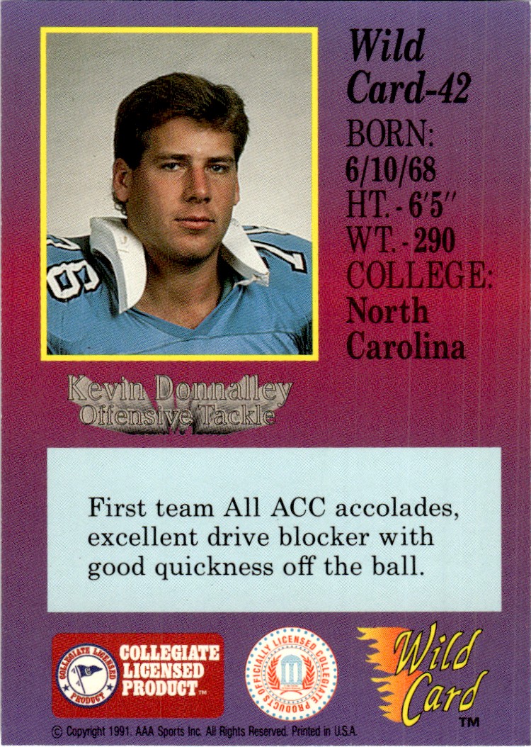 | 1991 Wild Card Draft Kevin Donnalley North Carolina Tar Heels #42 |