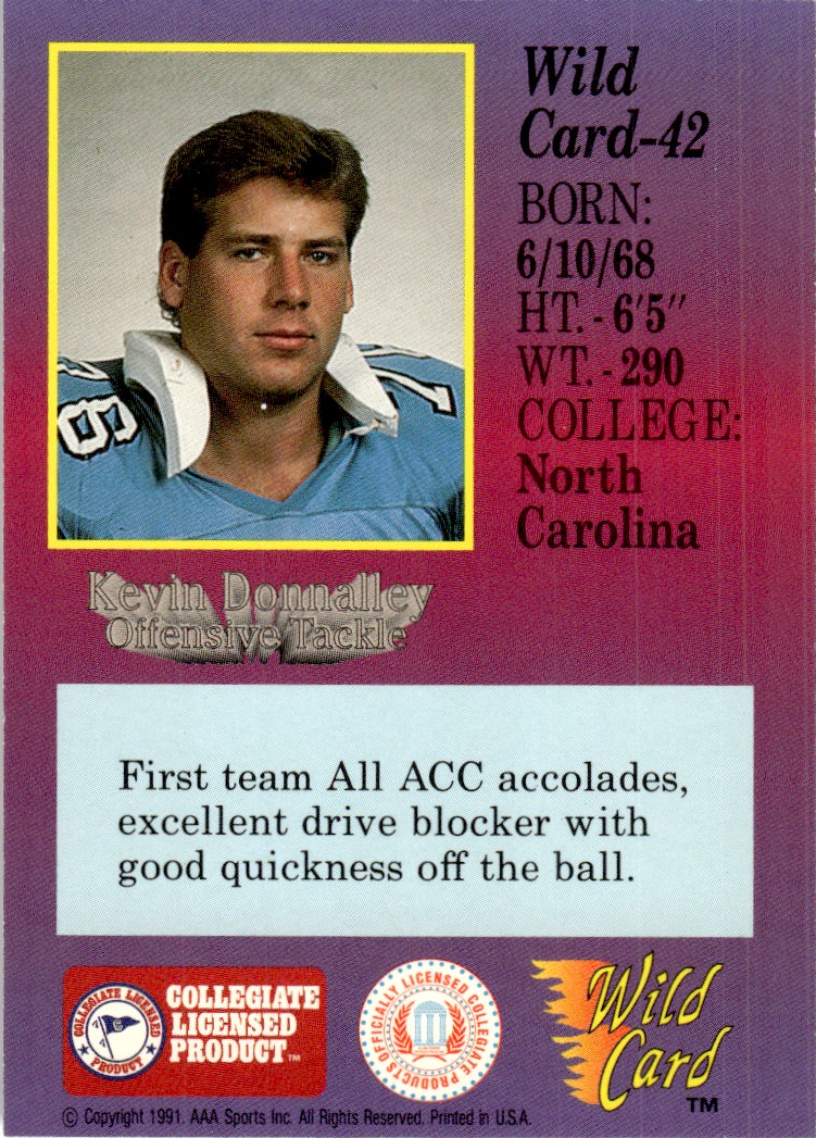 | 1991 Wild Card Draft Kevin Donnalley North Carolina Tar Heels #42 |