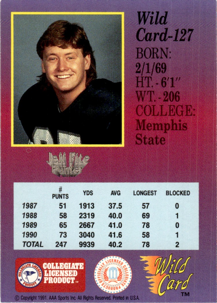 | 1991 Wild Card Draft Jeff Fite Memphis Tigers #127 |