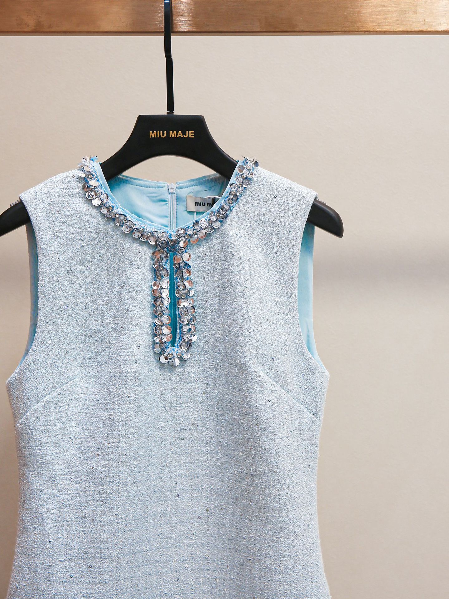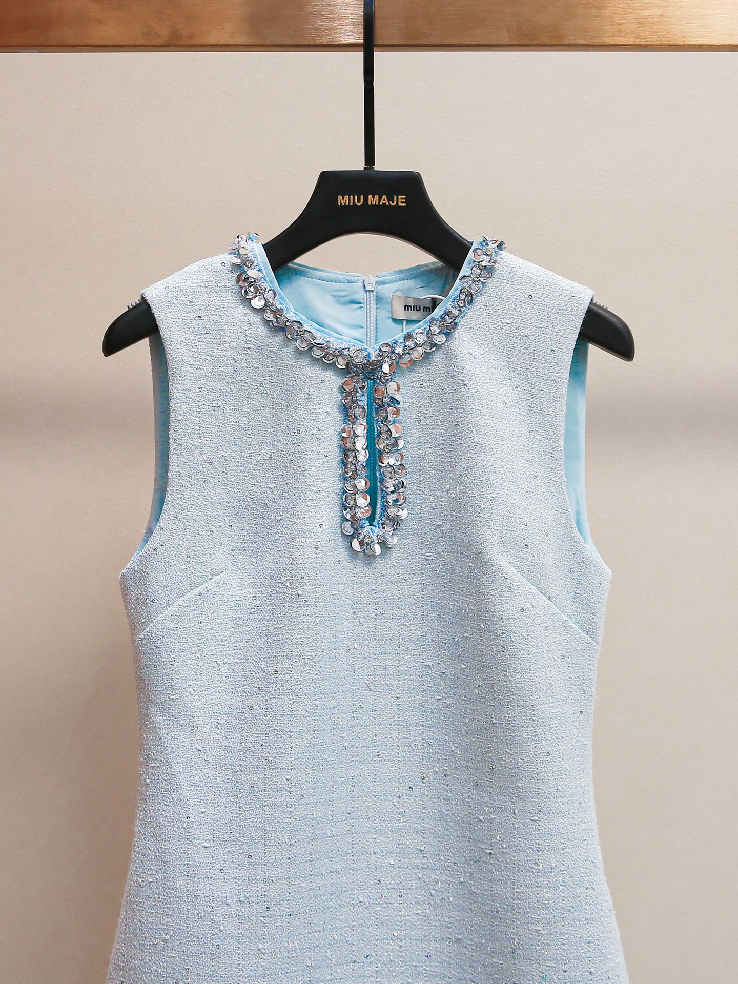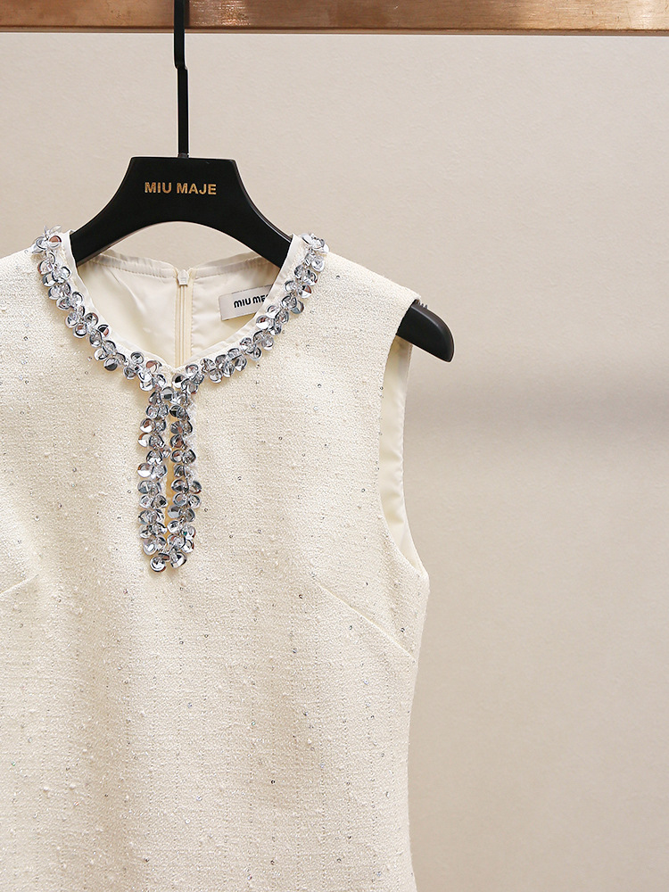 Self-Portrait Womens Summer New Sequined Hollow Round Neck Sleeveless Vest Dress