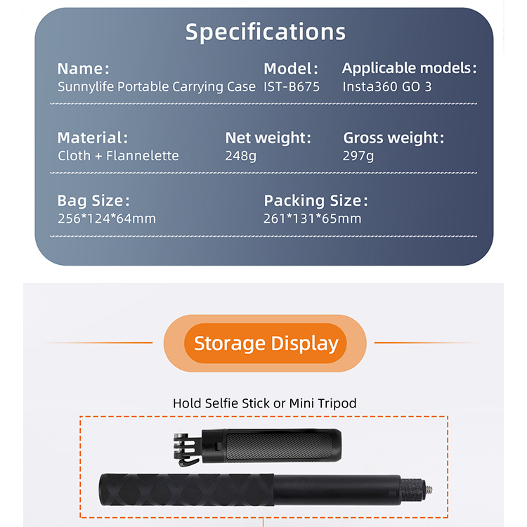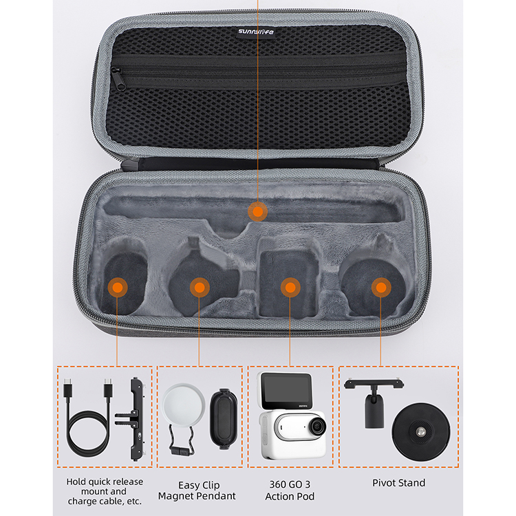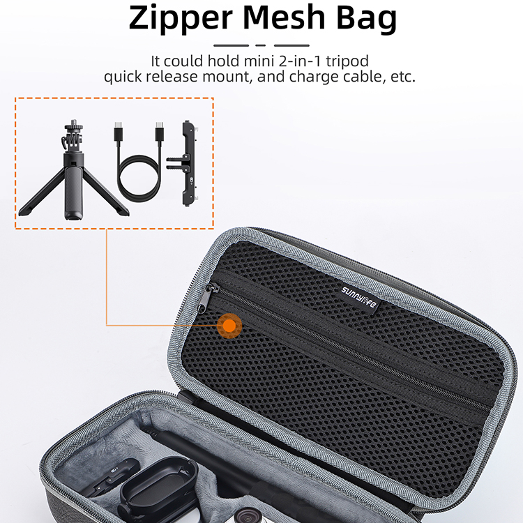 Zipper mesh bag, it could hold mini 2-in-1 tripod quick release mount, and charge cable, etc.