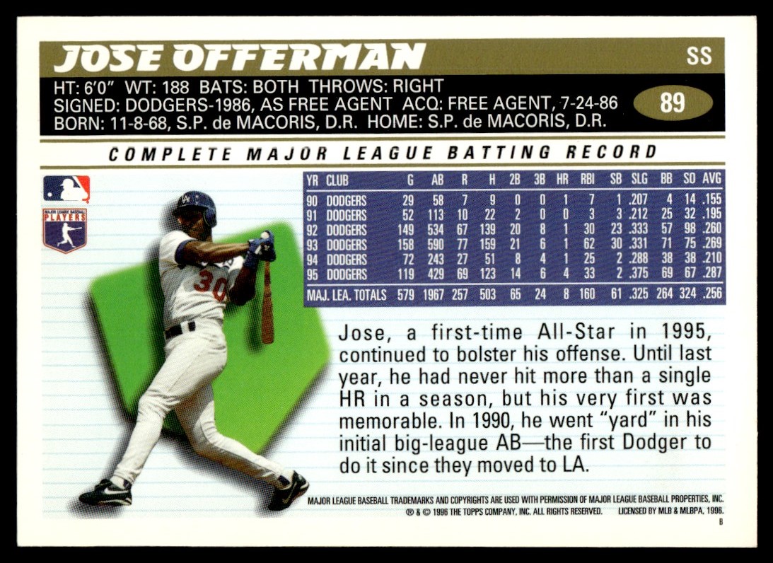 | 1996 Topps Jose Offerman Los Angeles Dodgers #89 |