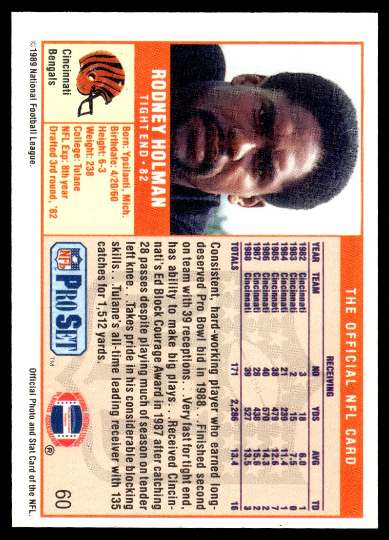 | 1989 Pro Set Rodney Holman Rookie Cincinnati Bengals #60A |