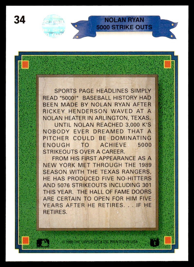 | 1990 Upper Deck Nolan Ryan Texas Rangers #34 |