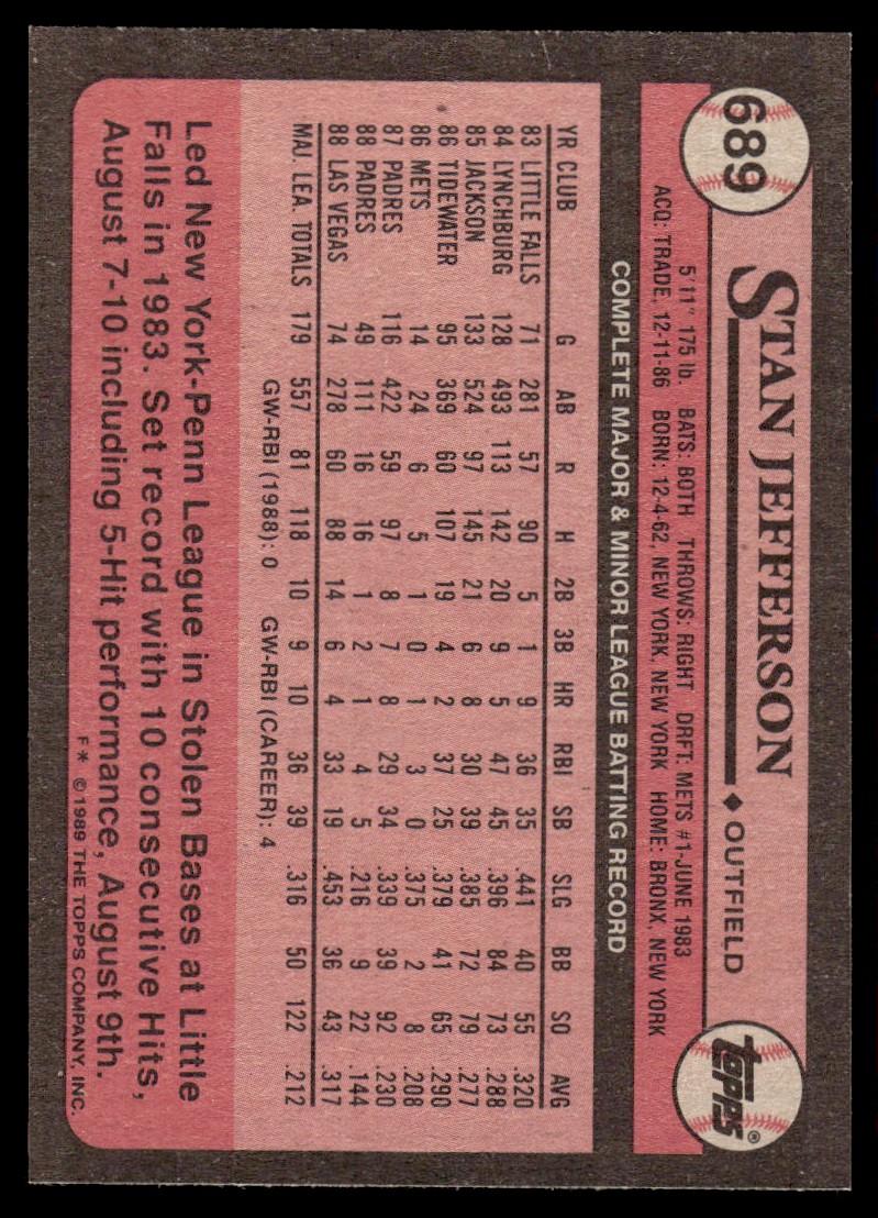 | 1989 Topps Stan Jefferson San Diego Padres #689A |