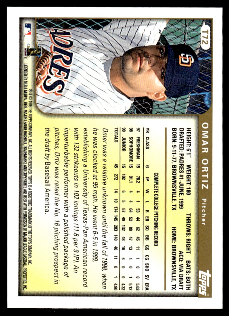 | 1999 Topps Traded & Rookies Omar Ortiz Rookie San Diego Padres #T72 |