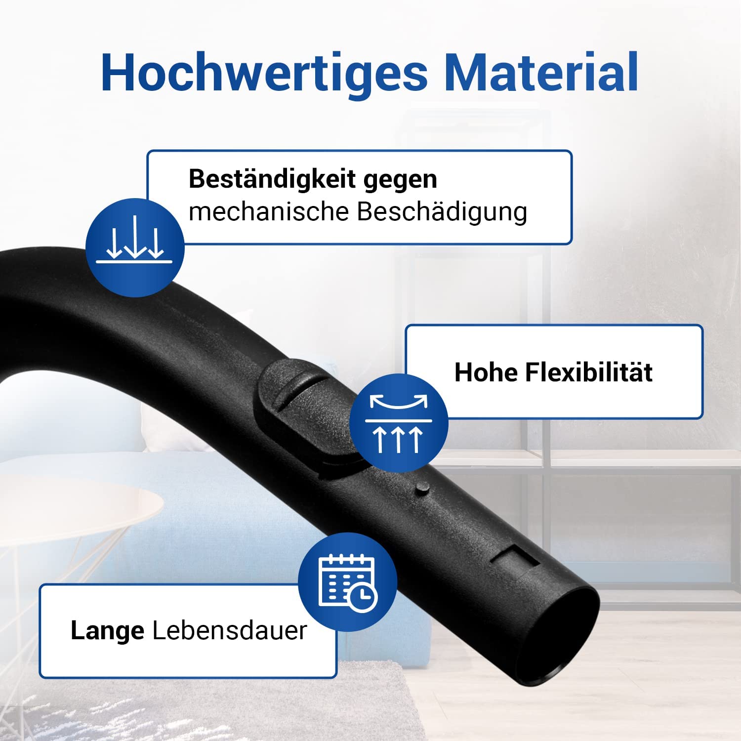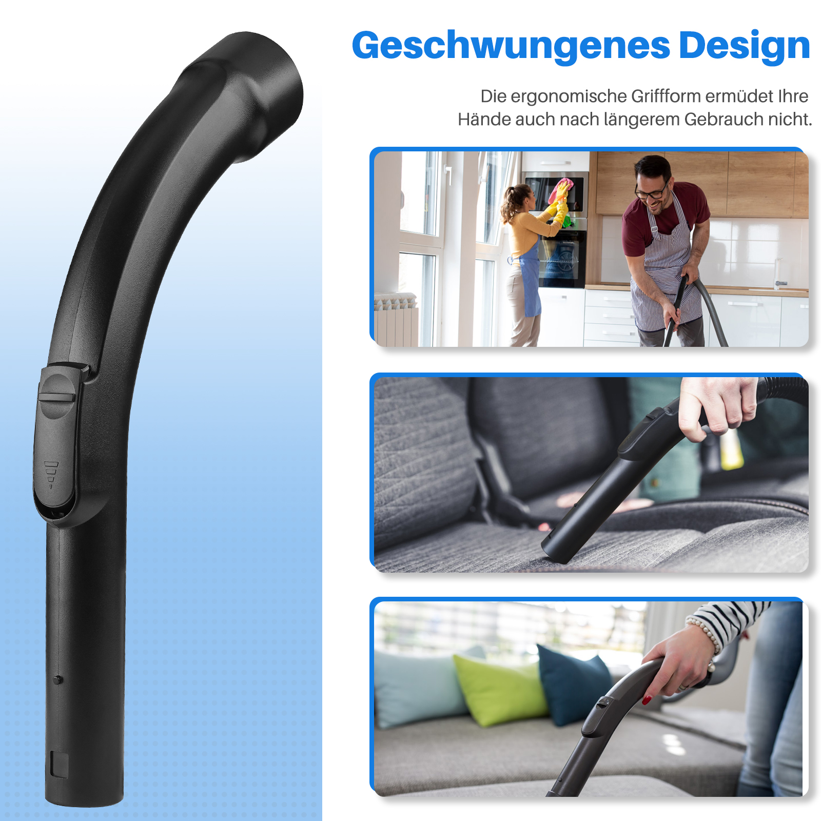 Der Griff besteht aus einer soliden Kunststoffmischung mit einer robusten Verriegelungsfunktion für eine einfache und solide Befestigung an Ihrem Staubsaugerschlauch.