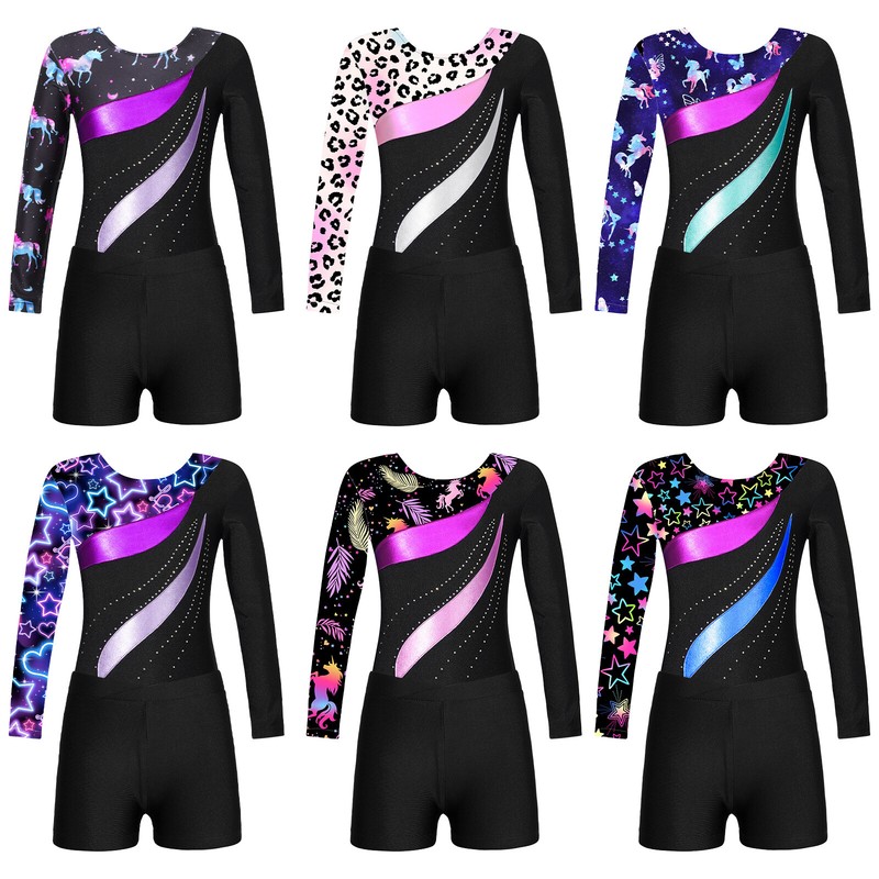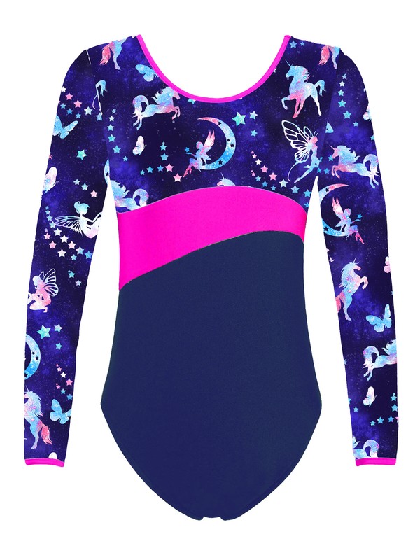 Long sleeves, high waist, colorful printed leotard ensures girls free movement.