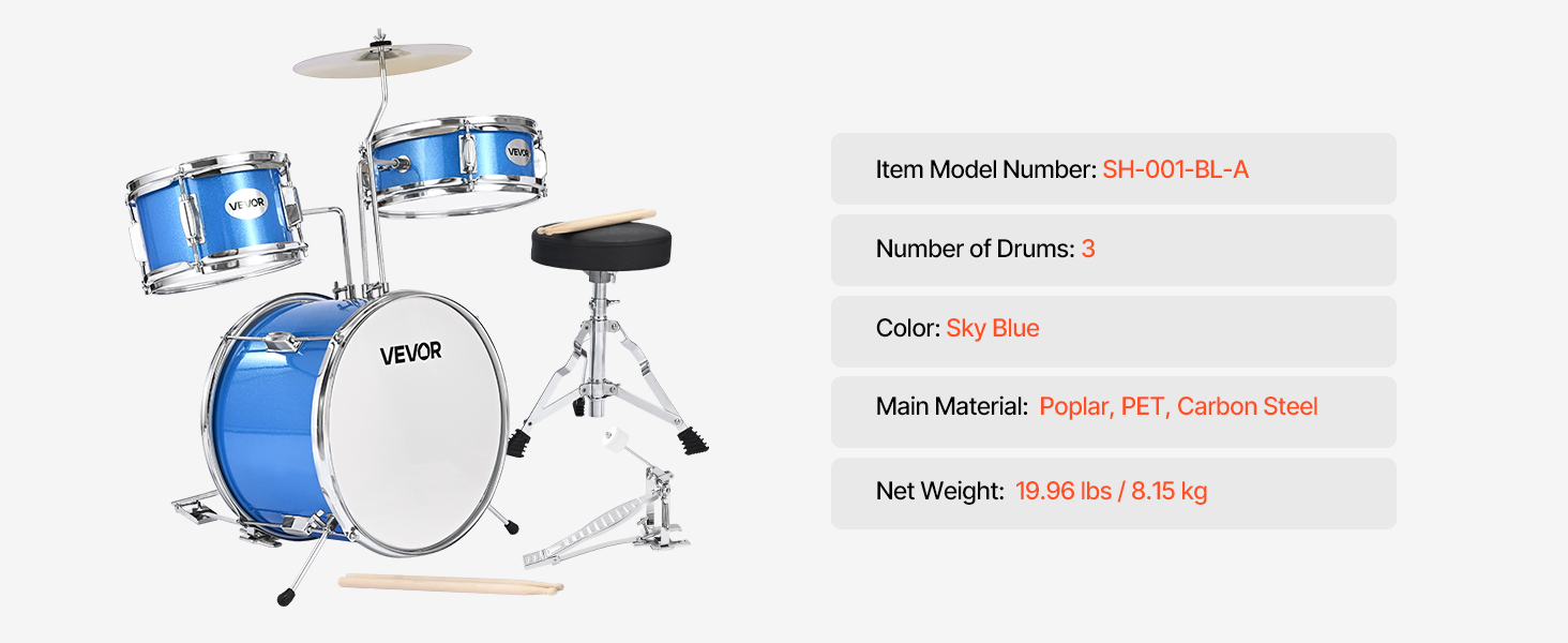 Questo set di batteria completo cresce con il tuo bambino, con una grancassa da 14 pollici, un rullante da 10 pollici, un tom-tom da 8 pollici e un piatto da 10 pollici. È ideale per principianti e futuri musicisti che desiderano esplorare i ritmi e acquisire sicurezza.