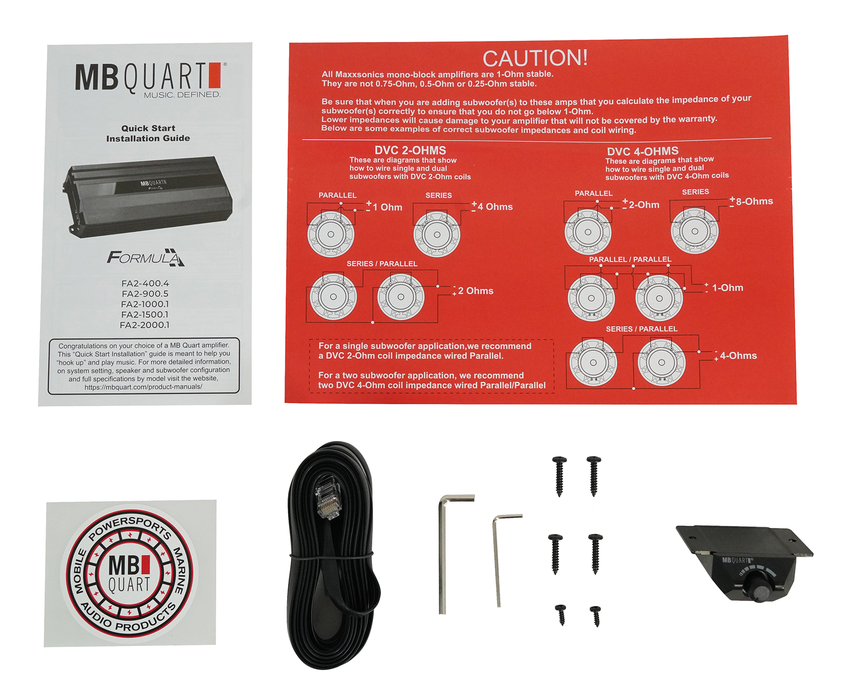MB QUART FA2-2000.1 2000 Watt Mono Amplifier 1 Ohm Car Audio Amp+Bass Remote
