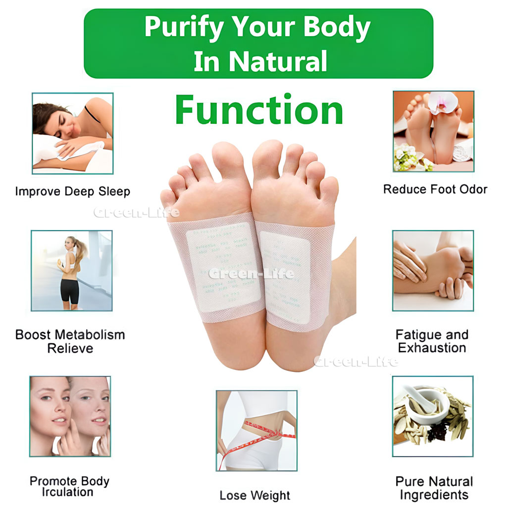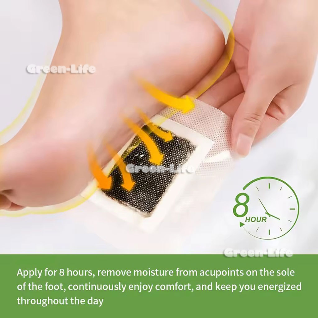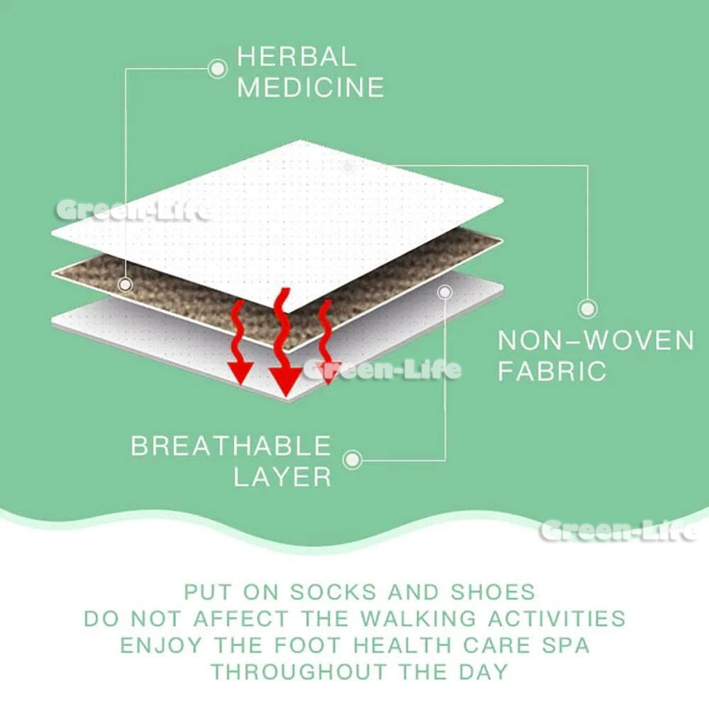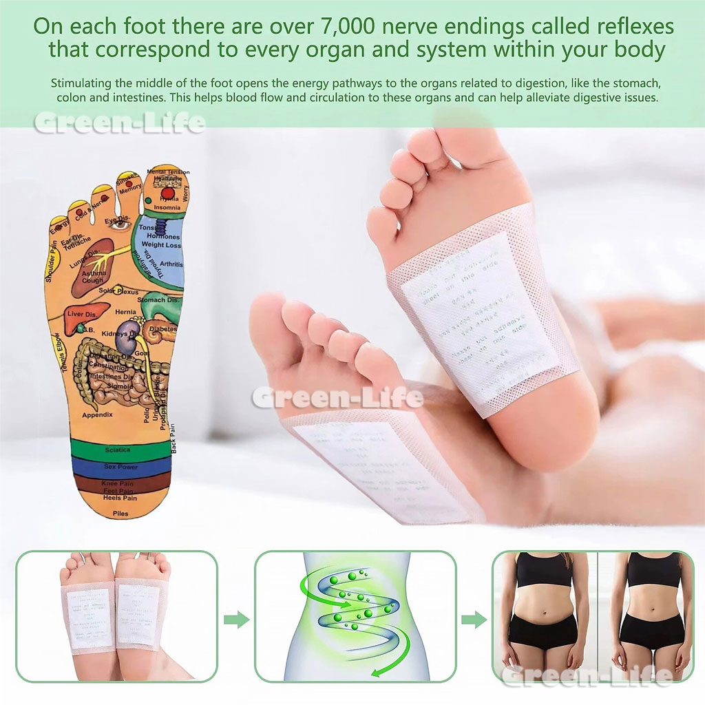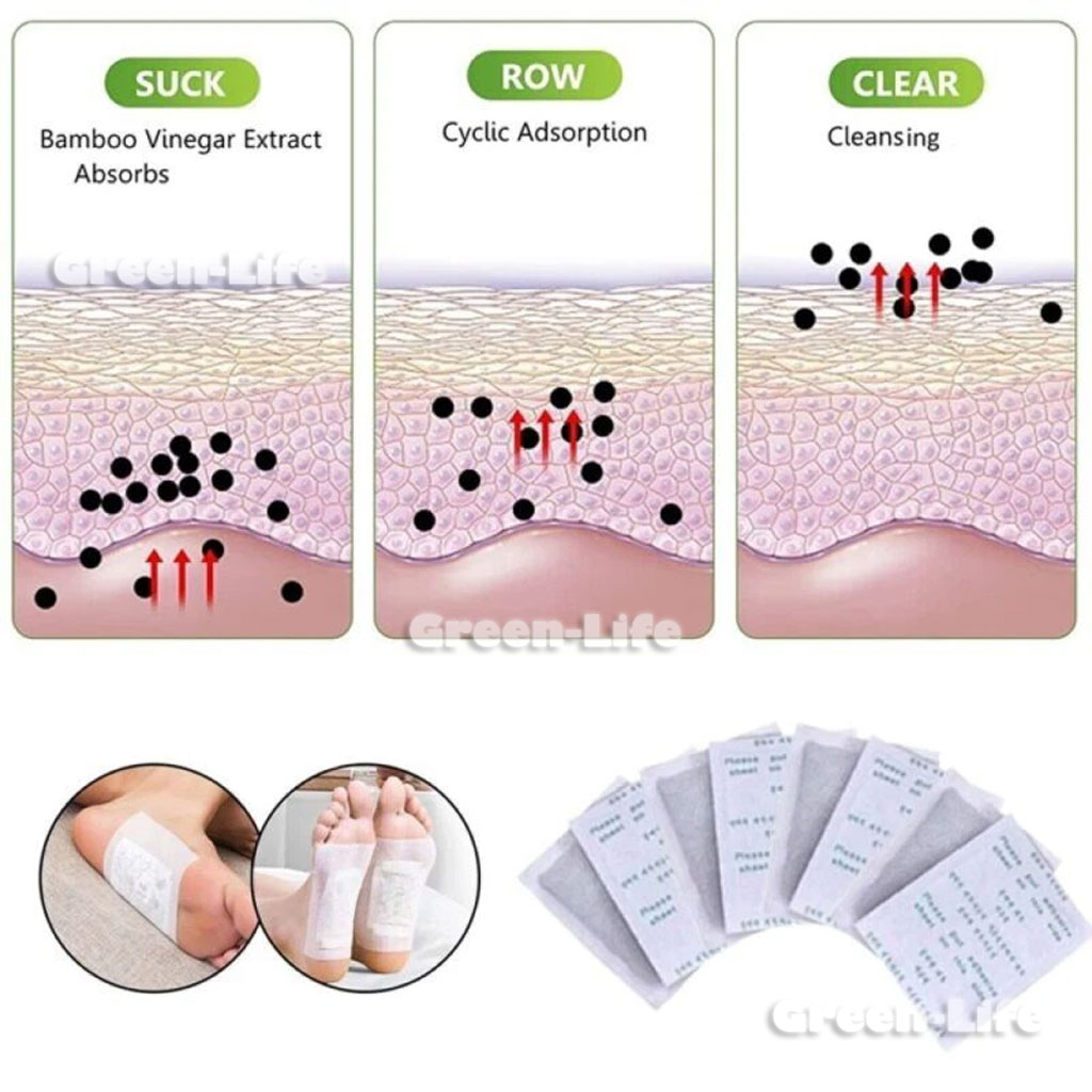 The foot pads contain natural ingredients which stimulate these acupuncture points through the combined action of wood/bamboo vinegar, far-infrared energy and negative ion emissions. This stimulation results in the breakdown of water and waste molecules that free blockages in the circulatory and lymphatic systems. Cleansing naturally begins in the soles of our feet.