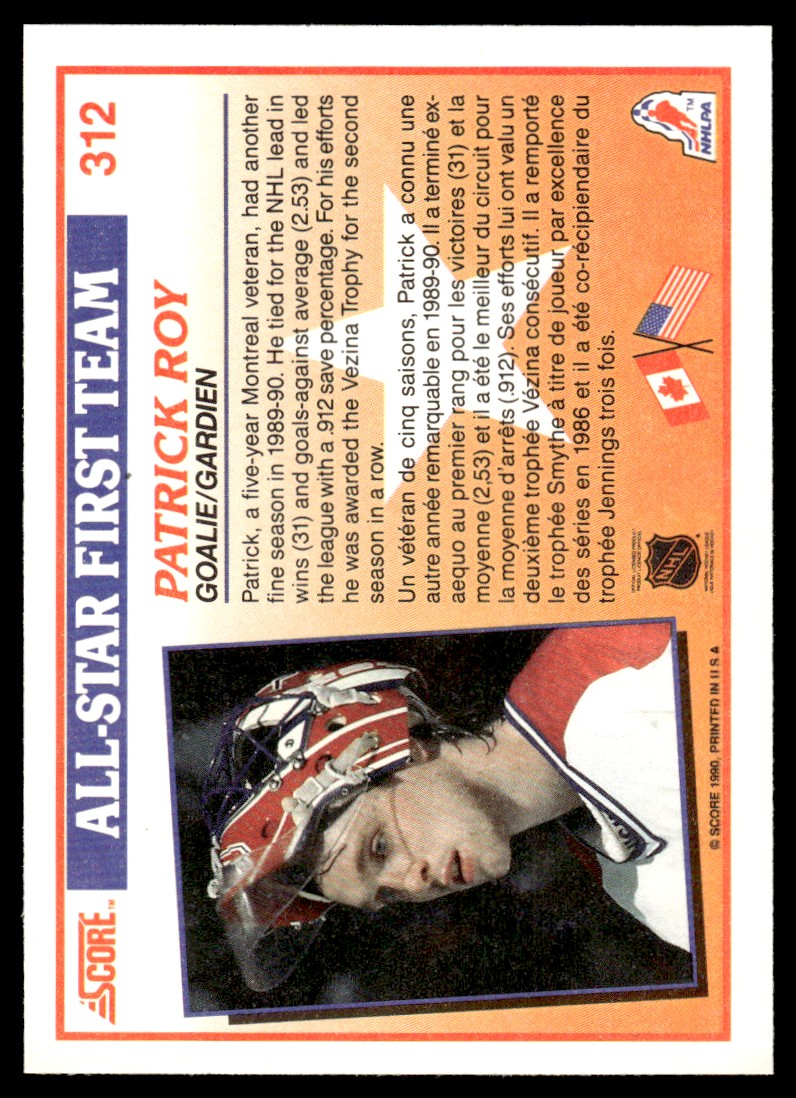 | 1990-91 Score Canadian Patrick Roy Montreal Canadiens #312 |
