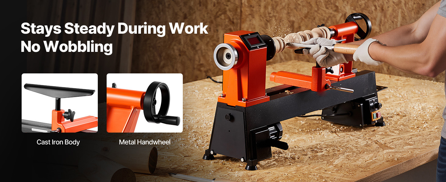Realizzato con un robusto corpo in ghisa, questo tornio per la lavorazione del legno rimane saldamente in posizione con vibrazioni minime. Goditi tagli più fluidi e maggiore precisione: niente oscillazioni, solo risultati.