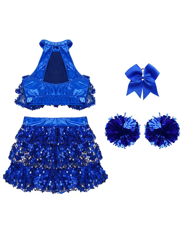 The crop top with sleeveless, shiny sequins mesh tiered style, hollow back design.